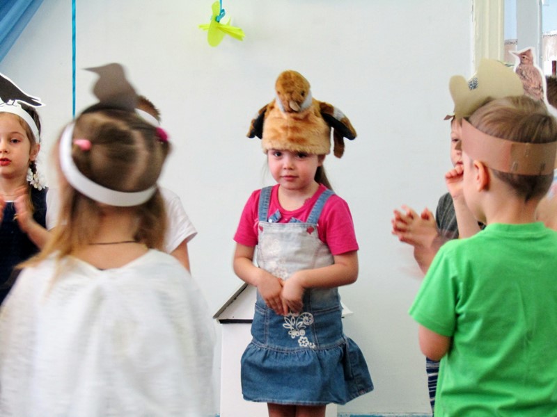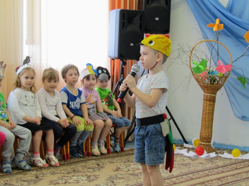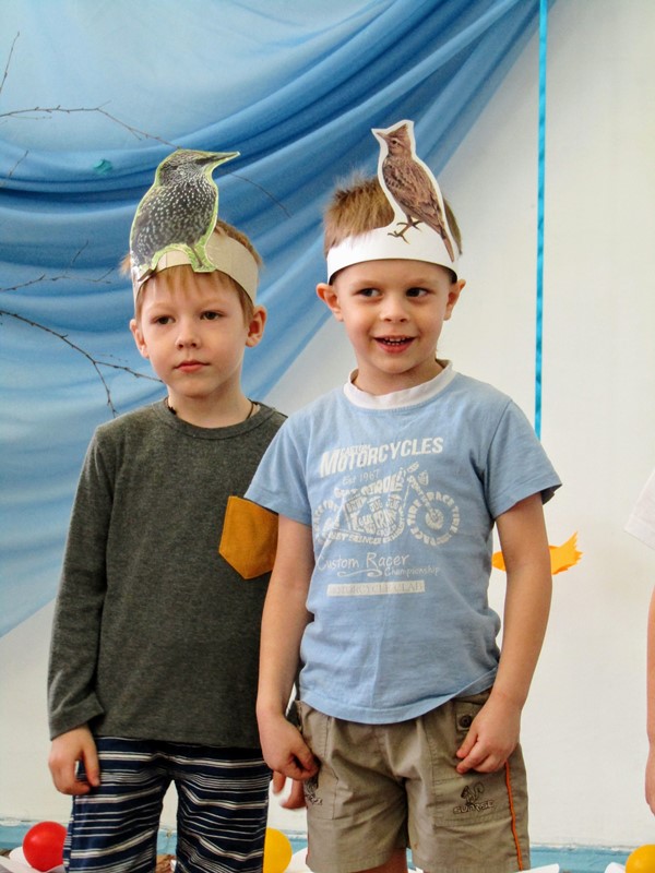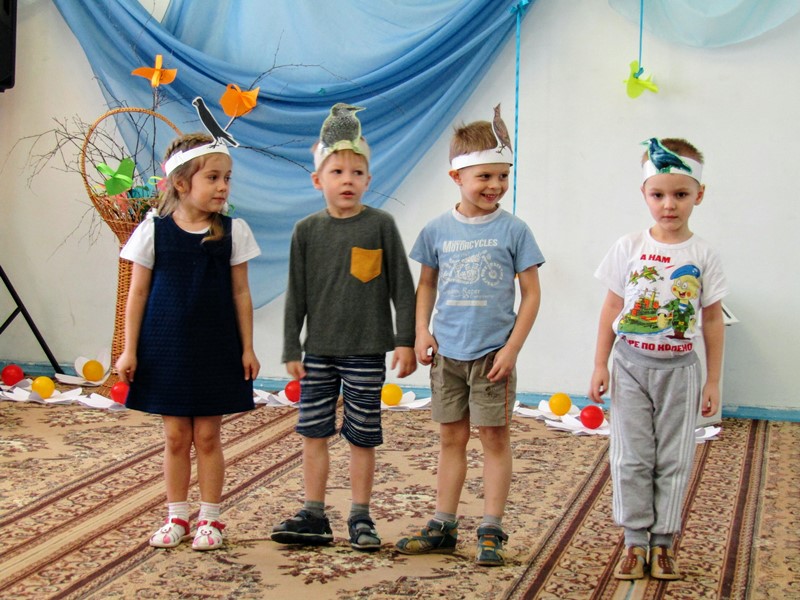 В течение тематической недели, посвященной пернатым обитателям наших городов и лесов, были проведены конкурс на лучший скворечник и кормушку, познавательные занятия и беседы, наблюдения за птицами на прогулке и развешивание кормушек, сделанных ребятишками с родителями. Разучивались тематические стихи, песни и игры. А самым важным событием недели стал детский праздник, проведённый воспитателем средней группы Натальей Николаевной Ратановой.