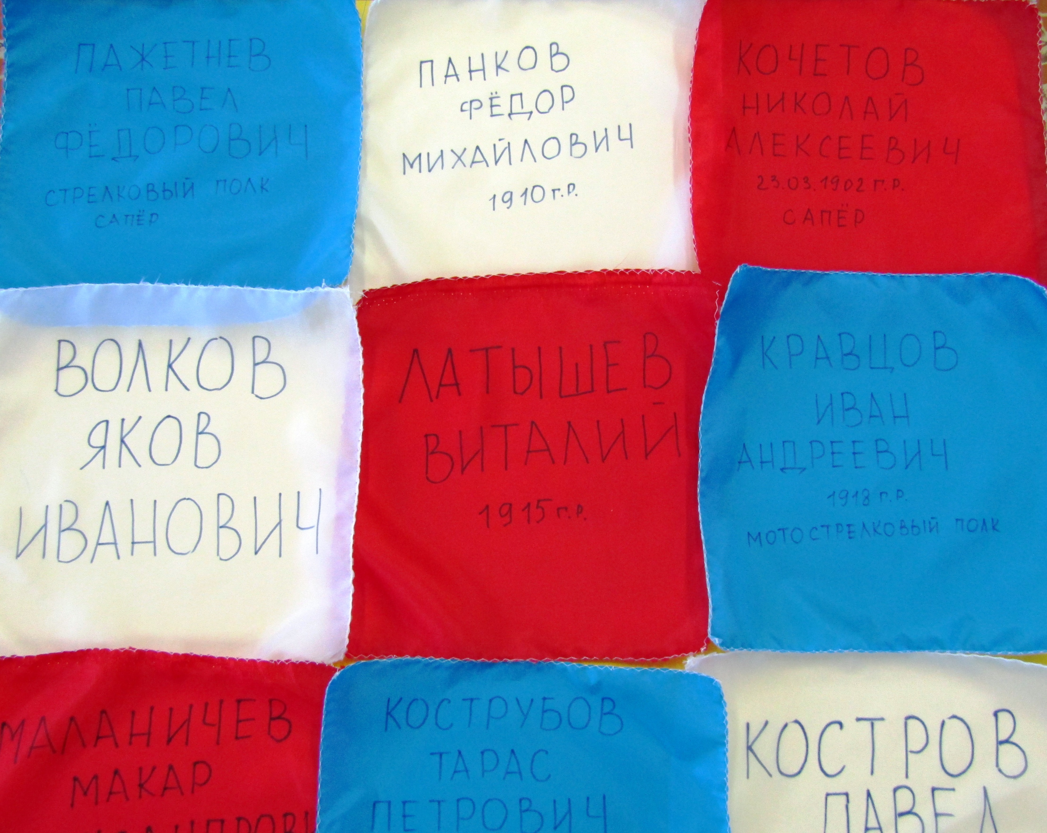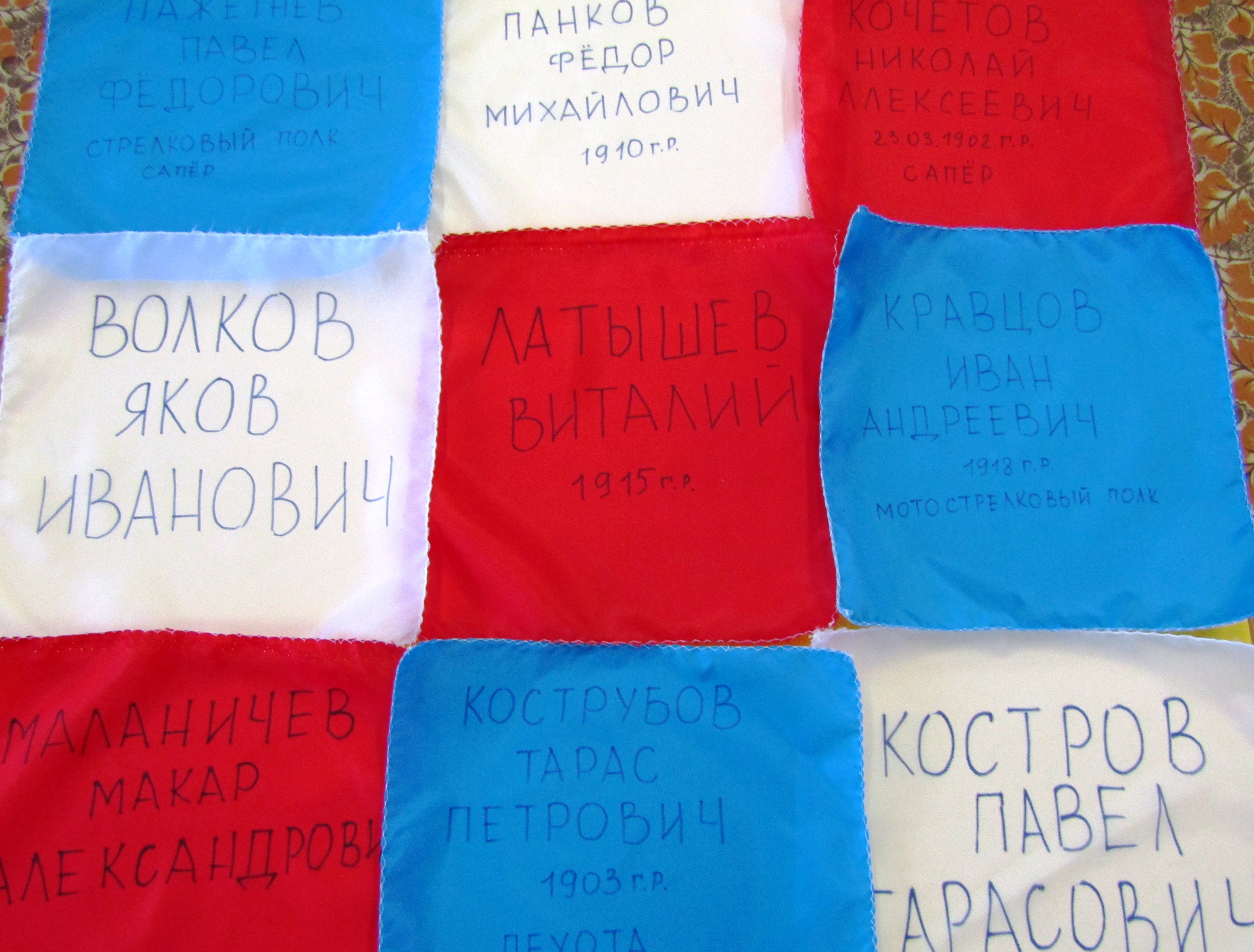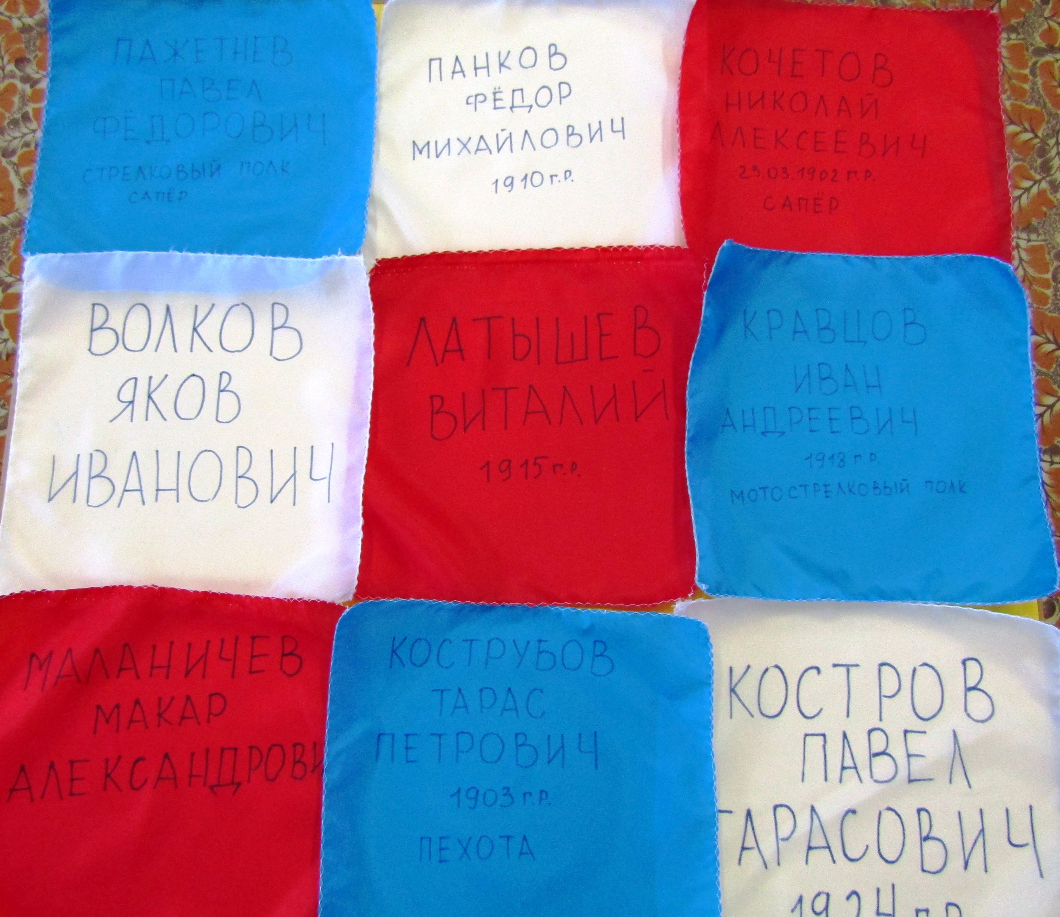 Эти данные были нанесены на куски материи (платки) размером 30х30 см.