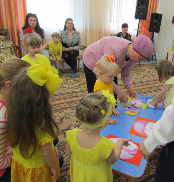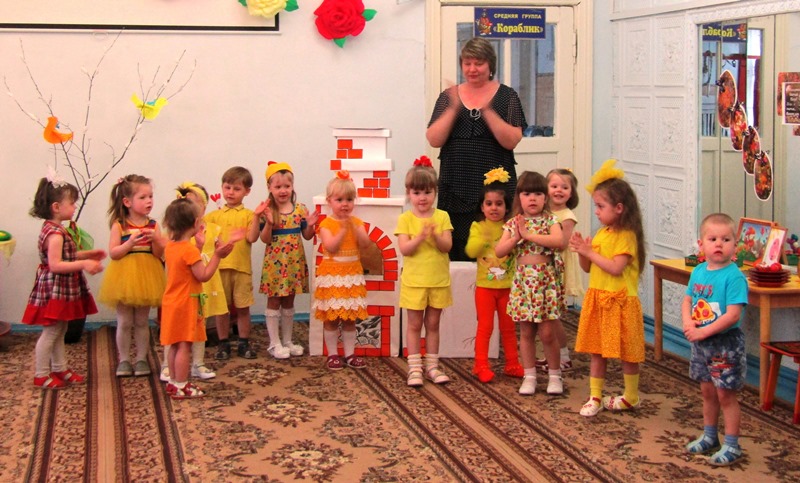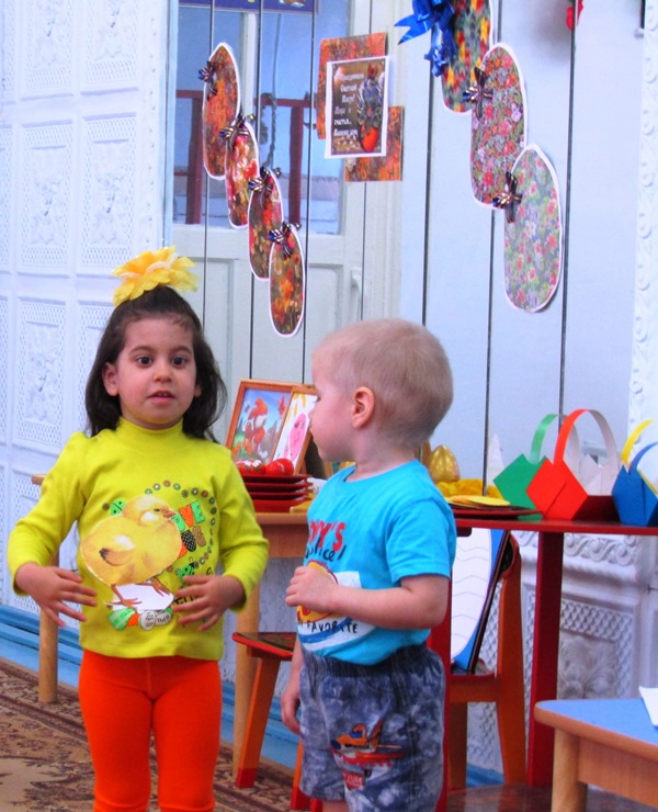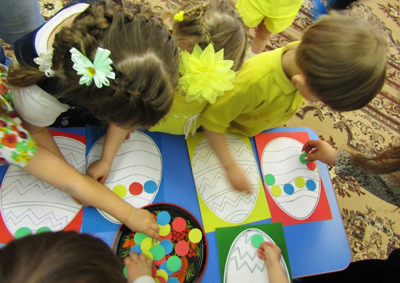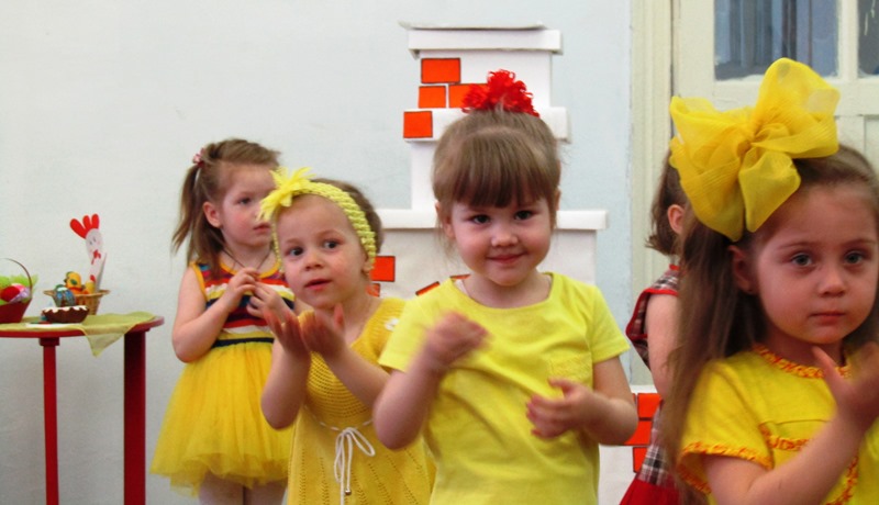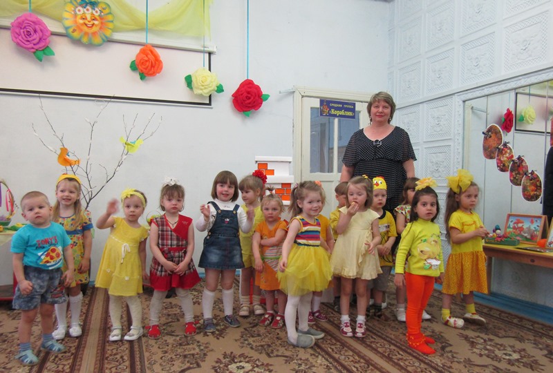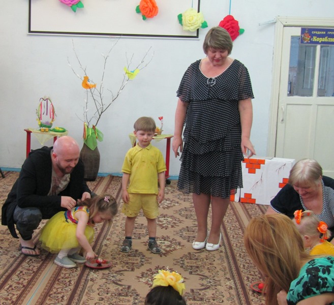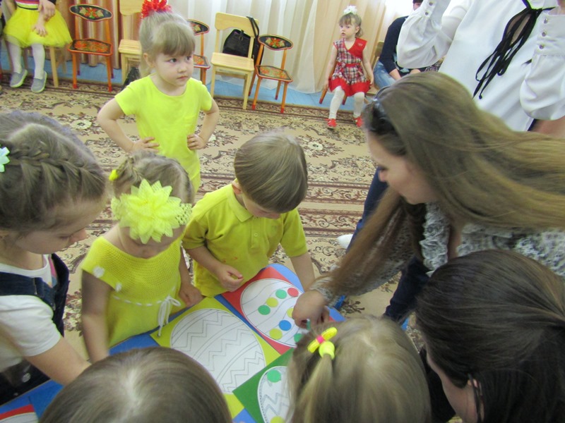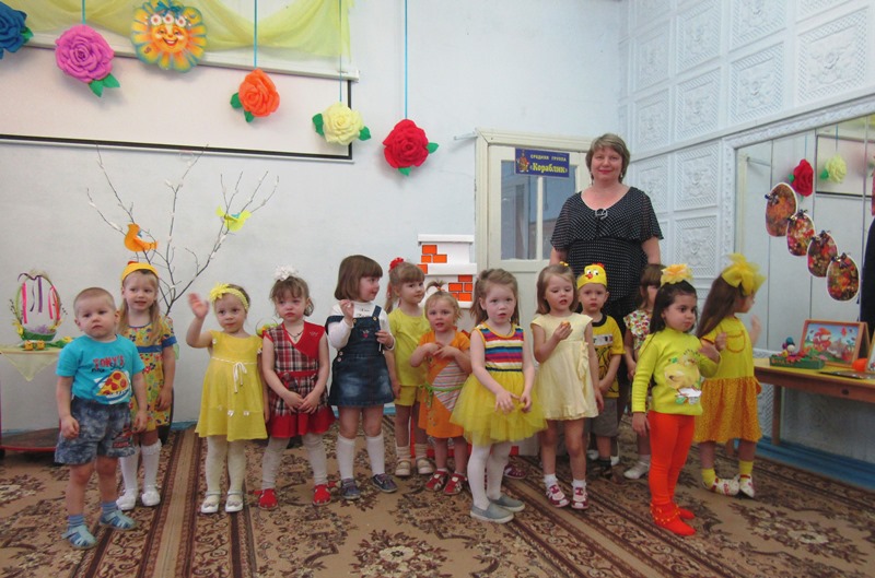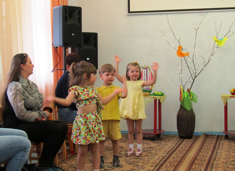 А ребятишки, одетые в желтые наряды, напоминали непоседливых цыплят, которых собрать вместе так и хотелось словами: "Цып, цып, цып..." Эти "неугомонные желтые комочки" пекли куличики и украшали яйца, соревновались, кто быстрее соберет кулич и дольше будет катать яйцо, пели и танцевали. А главное - делились своим теплом, неподдельным восхищением от праздника и пасхальной радостью!