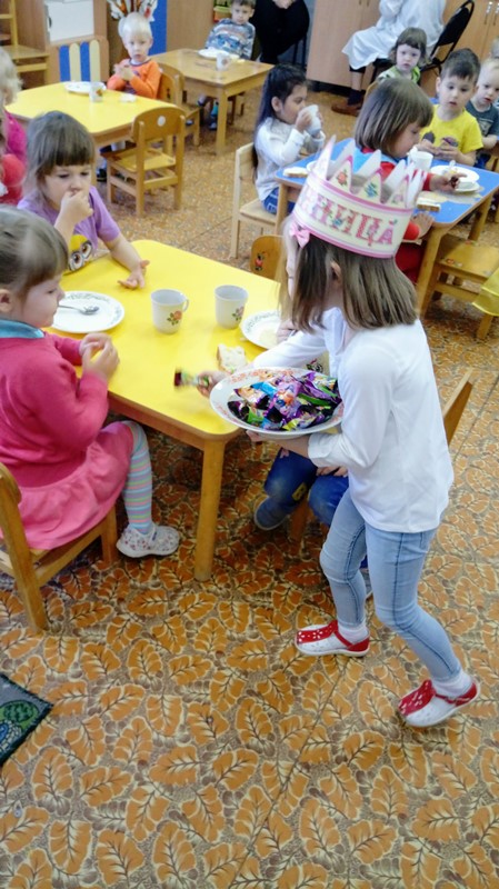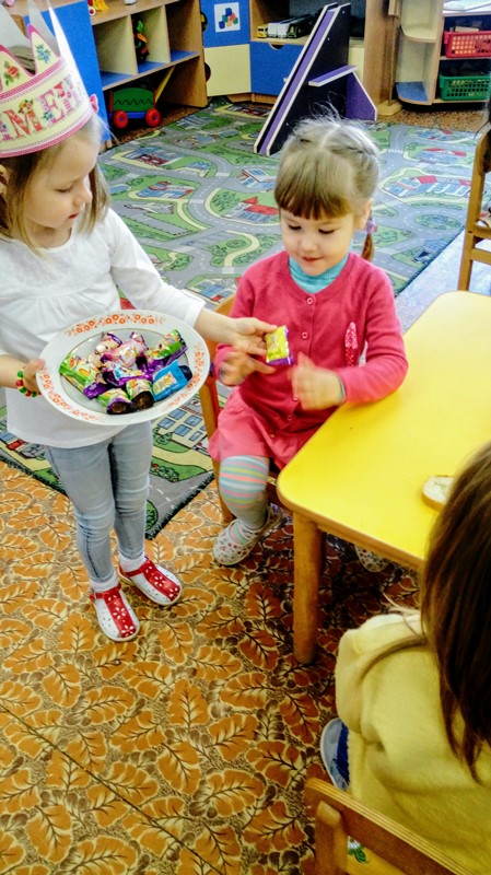 Соблюдая традиции второй младшей группы, поздравляли с днём рождения и Вареньку Кутазову. День удался на славу: и песни пели, и хороводы водили, и именинницу чествовали, и сладостями угощались от души, и рисунки на память подарили все ребята. А главное – весь день улыбка не сходила с лица нашей милой девочки.