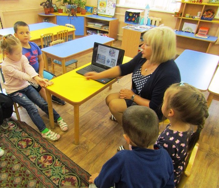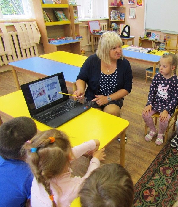 Ребятам рассказывают о героической истории нашего края. Они смотрят электронные презентации. Беседуют и обсуждают увиденное. Узнают много нового. И, конечно же, всё это делается педагогами в доступной и игровой форме.