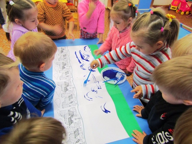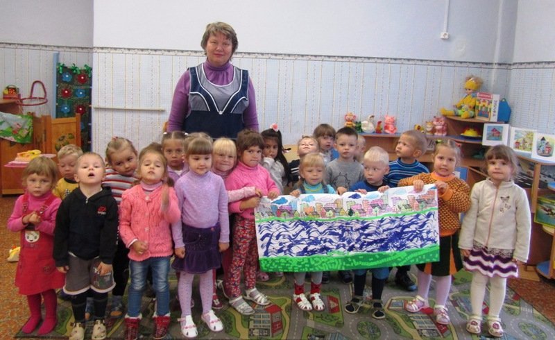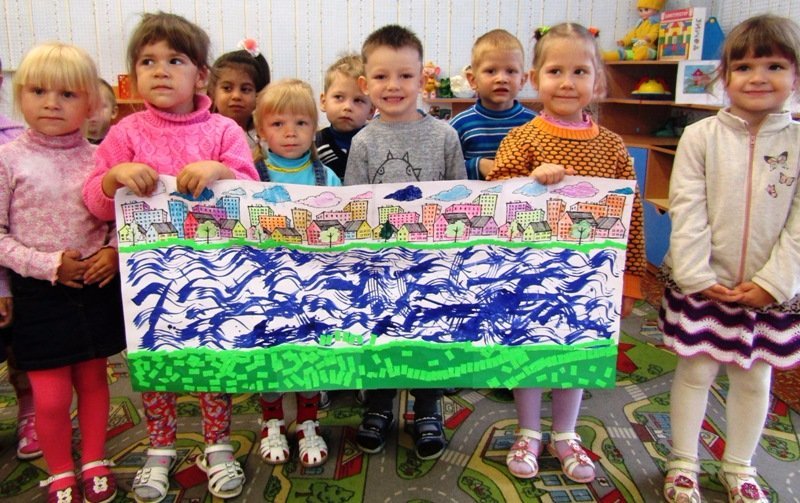 День Земли Балахнинской – любимый праздник всех балахнинцев от мала до велика. Во второй младшей группе «Мишутка» (воспитатель Елена Юрьевна Кожокина) накануне праздника с малышами была проведена тематическая беседа и выполнена интересная коллективная работа, посвященная нашему городу, стоящему на великой русской реке Волге.
