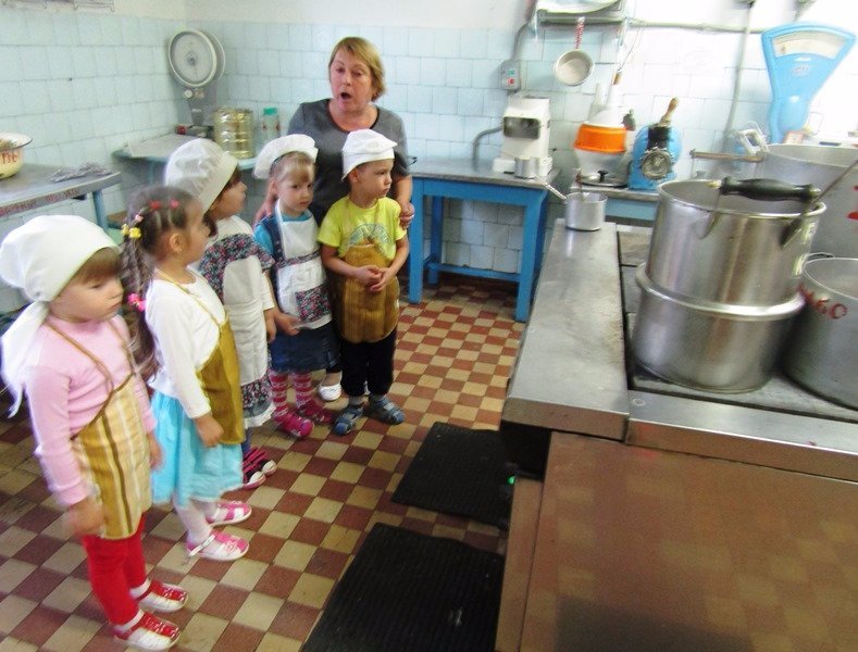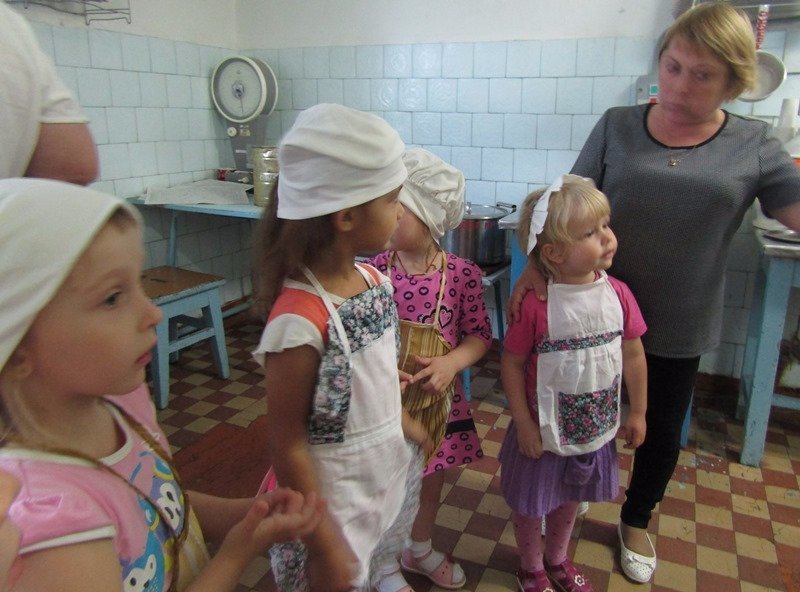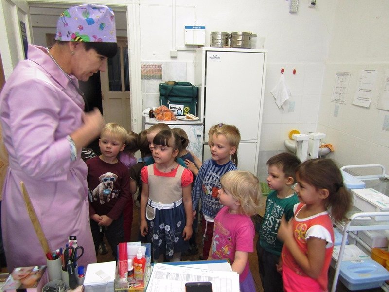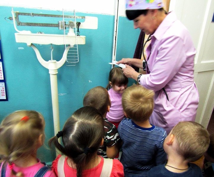 Во-первых, ребята совершили ознакомительную экскурсию по нашему детскому саду, заглянули в медицинский кабинет и на кухню, чтобы познакомиться с такими важными профессиями, как медицинская сестра, врач, повар, рабочий по кухне, кладовщик.