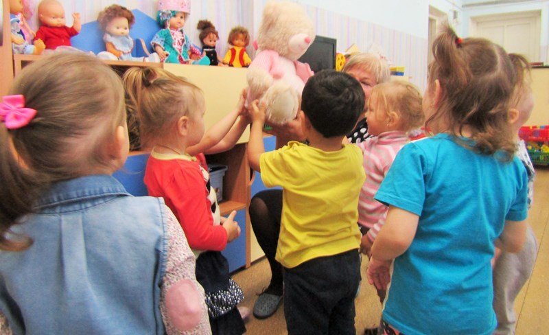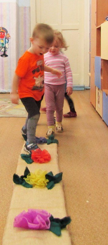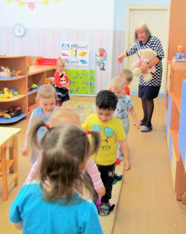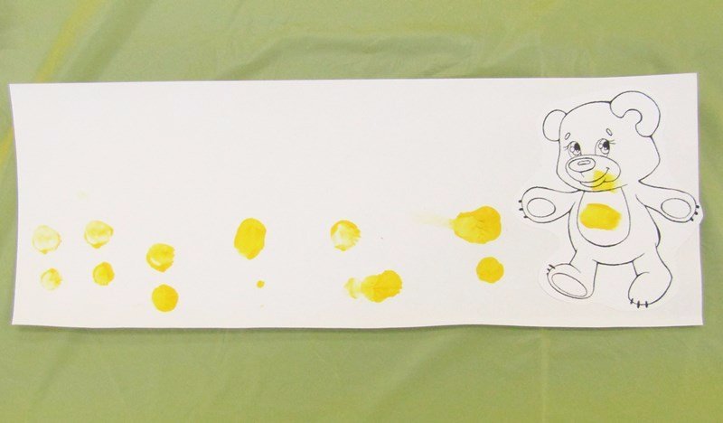 В гости к нашим малышам пришел Мишка. Вместе с ним ребята вспомнили песенку про косолапого, потанцевали, пробежали по лесной тропинке. А потом решили нарисовать такую же тропинку и для Мишки.