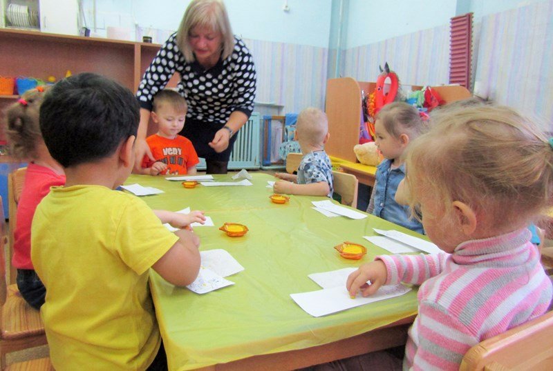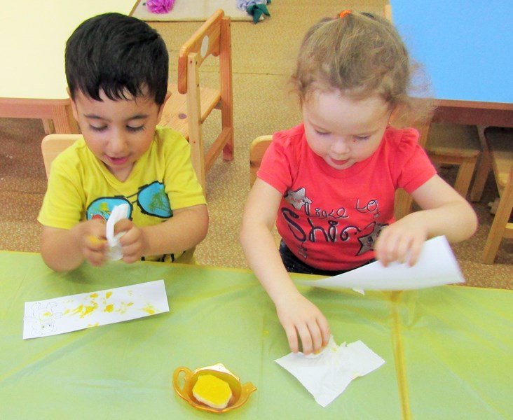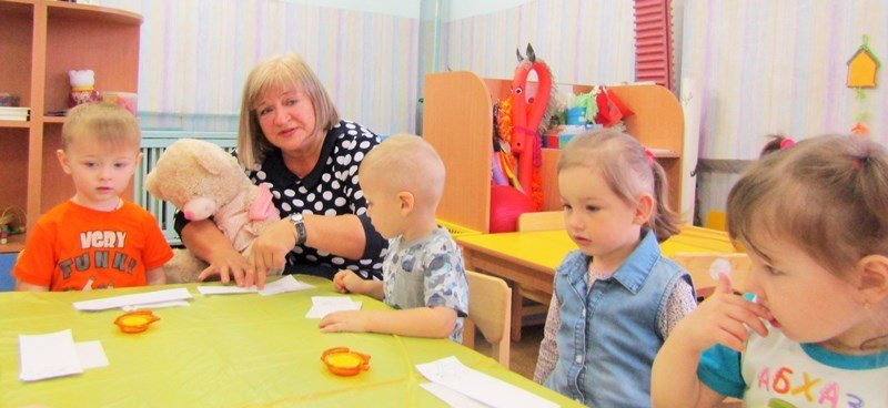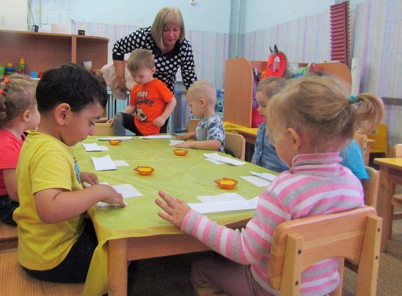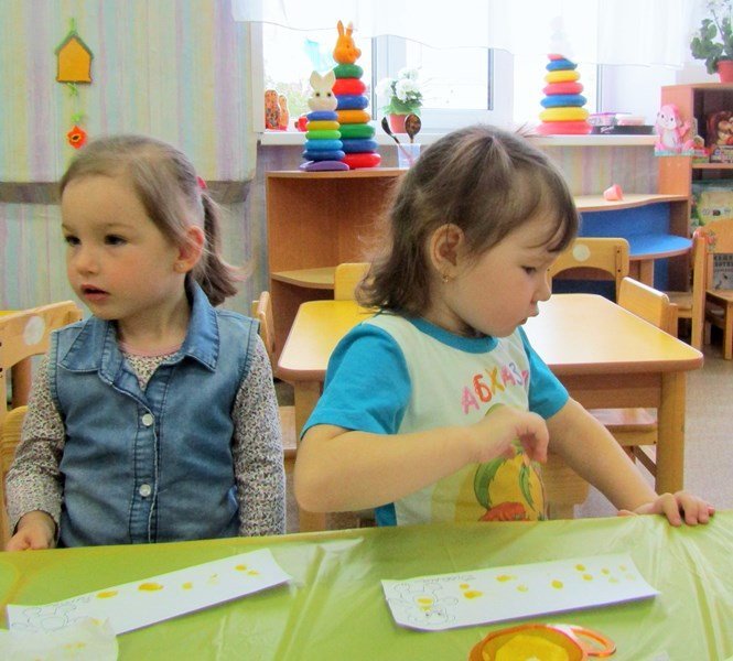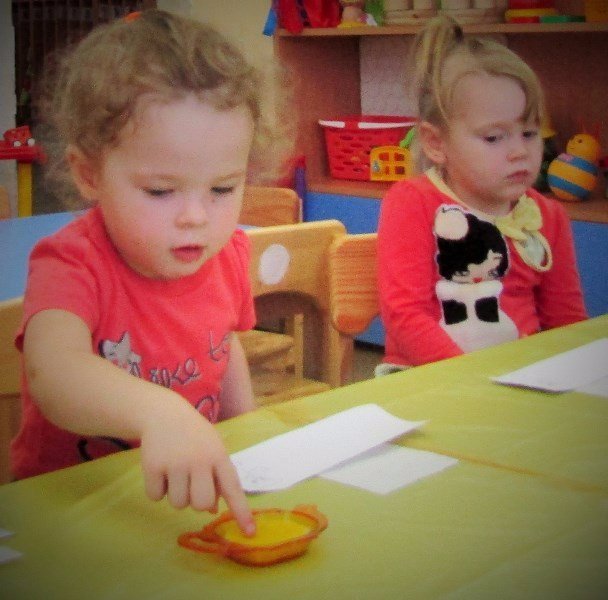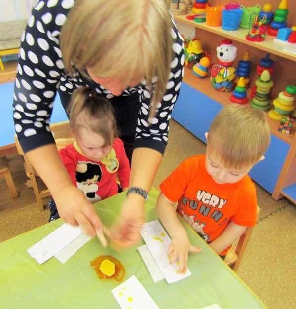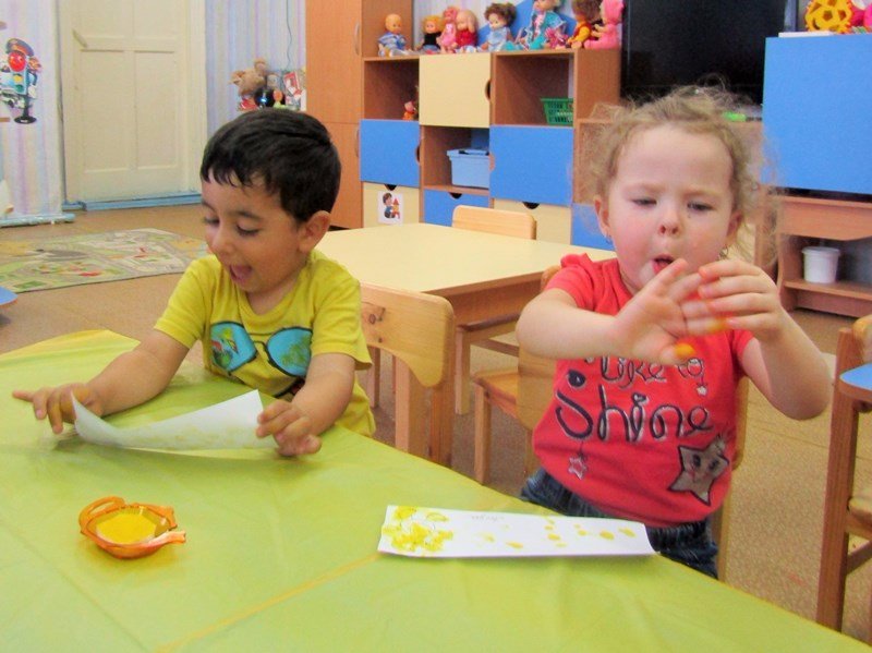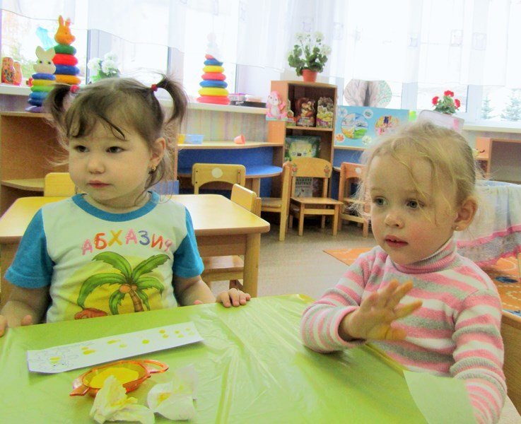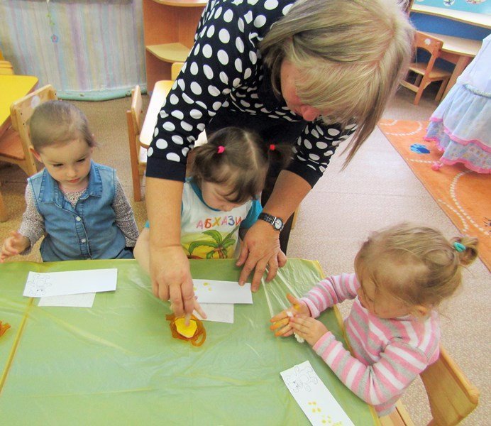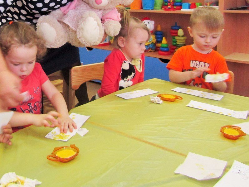 Открытое занятие по рисованию состоялось в первой младшей группе «Теремок» (воспитатель Наталья Аркадьевна Усова). Педагог использовал нетрадиционную технику – рисование пальчиками.
