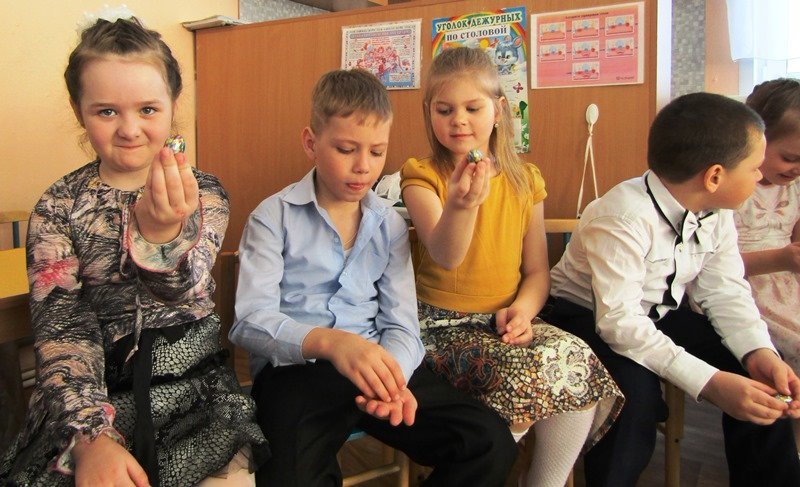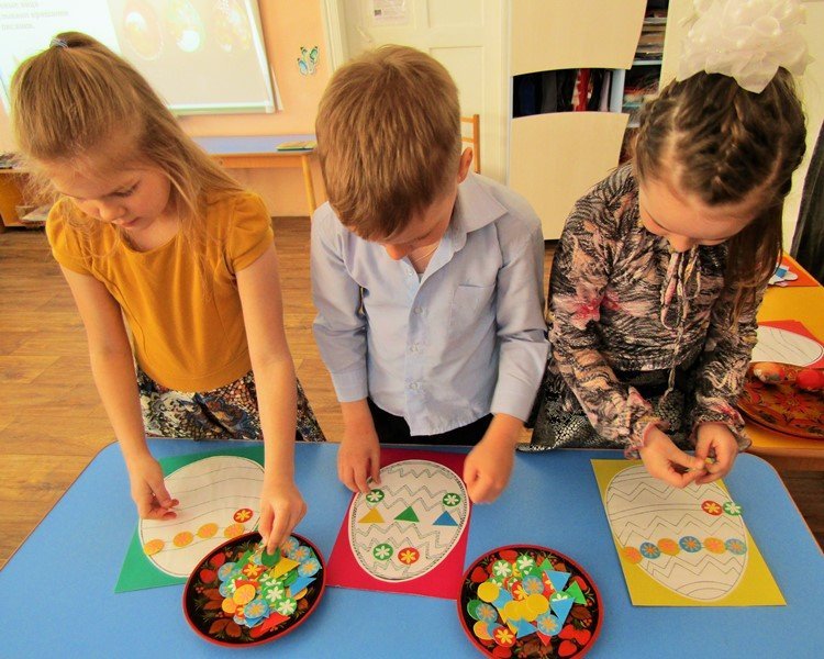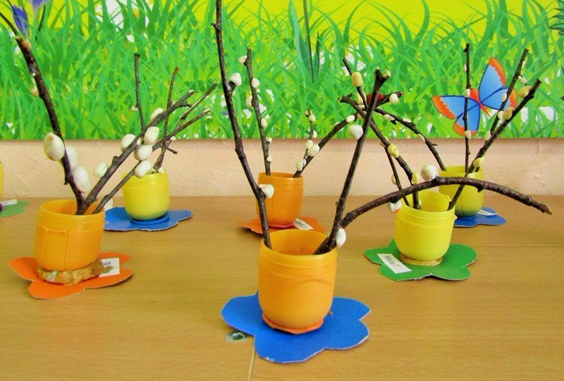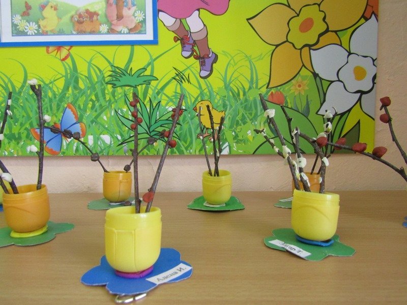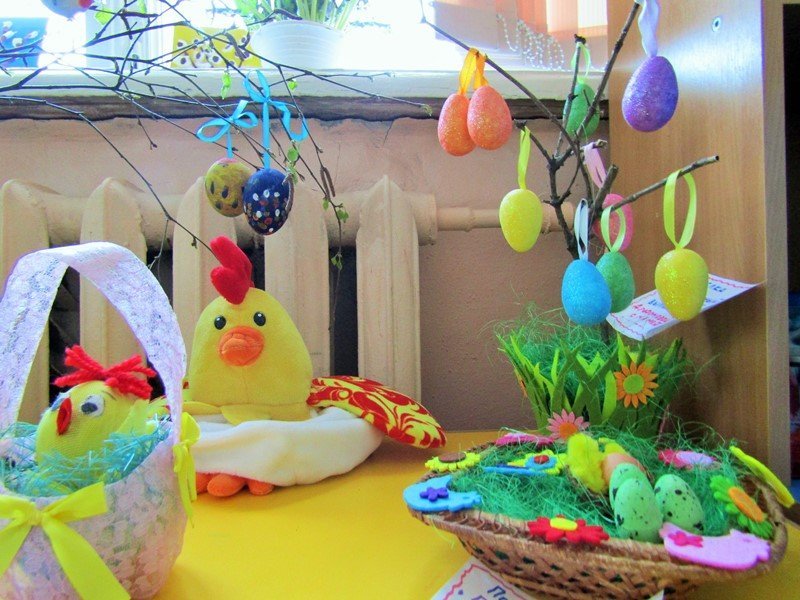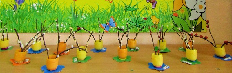 В течение недели ребята под чутким руководством Елены Юрьевны делали разные поделки: вазочки с вербочками, пасхальных курочек, украшали пасхальные яйца.