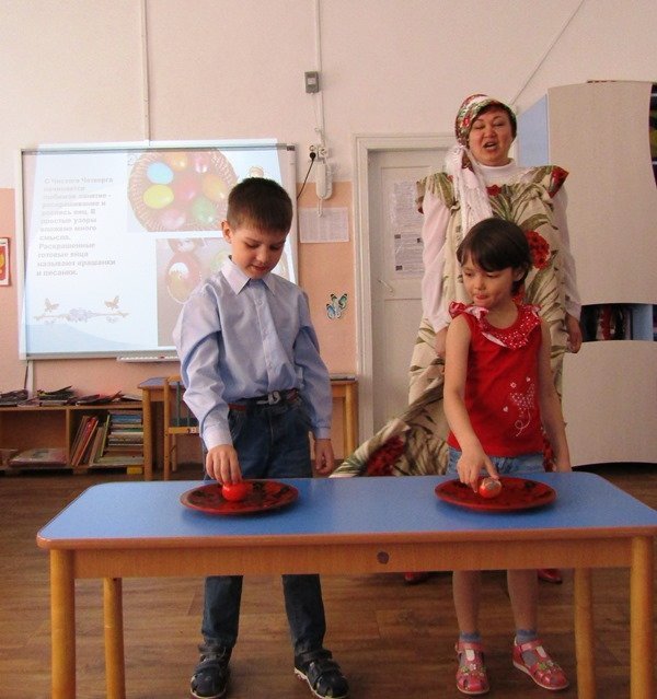 12 апреля состоялось тематическое занятие в старшей группе «Солнышко» (воспитатель Елена Юрьевна Ерёмина). Ребятам в игровой форме рассказали о главных традициях празднования на Руси Пасхи. Детвора танцевала и играла, соревнуясь друг с другом в сноровке и ловкости.