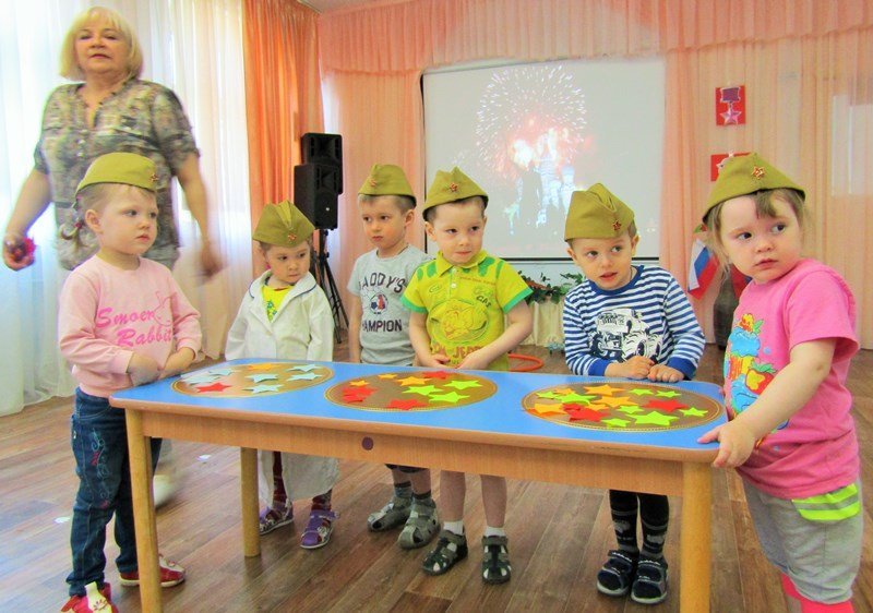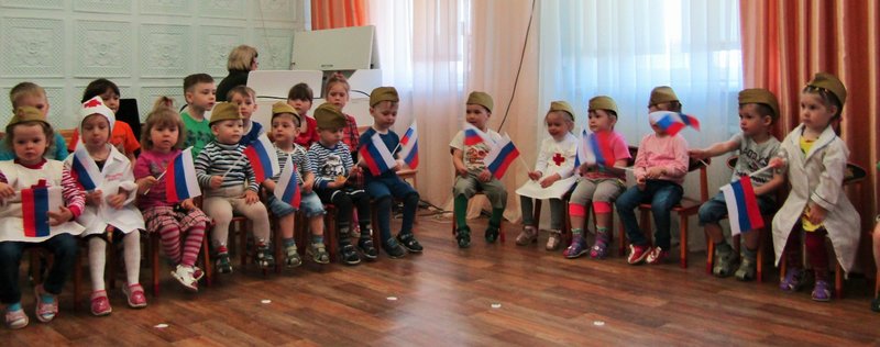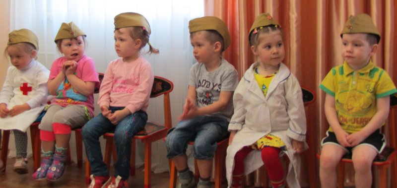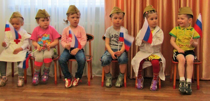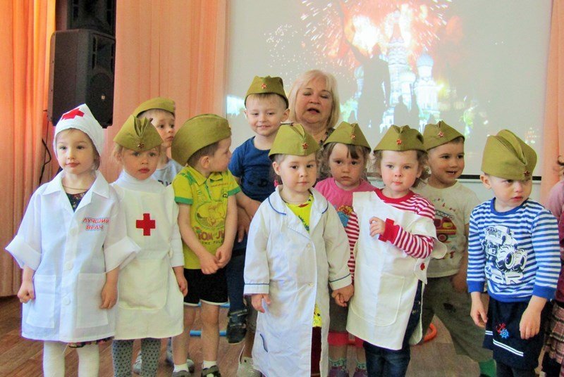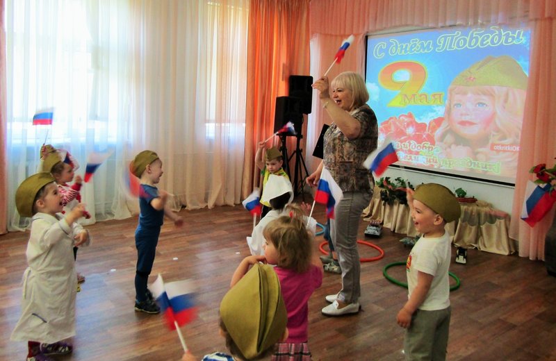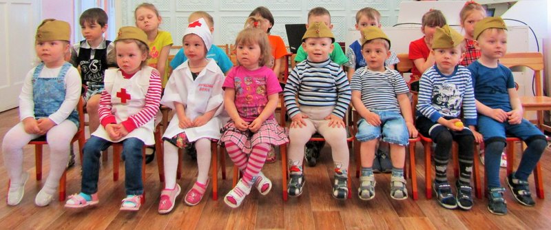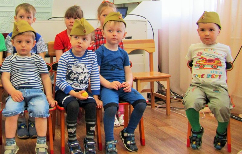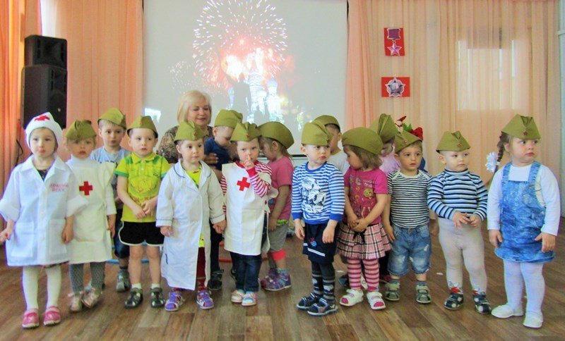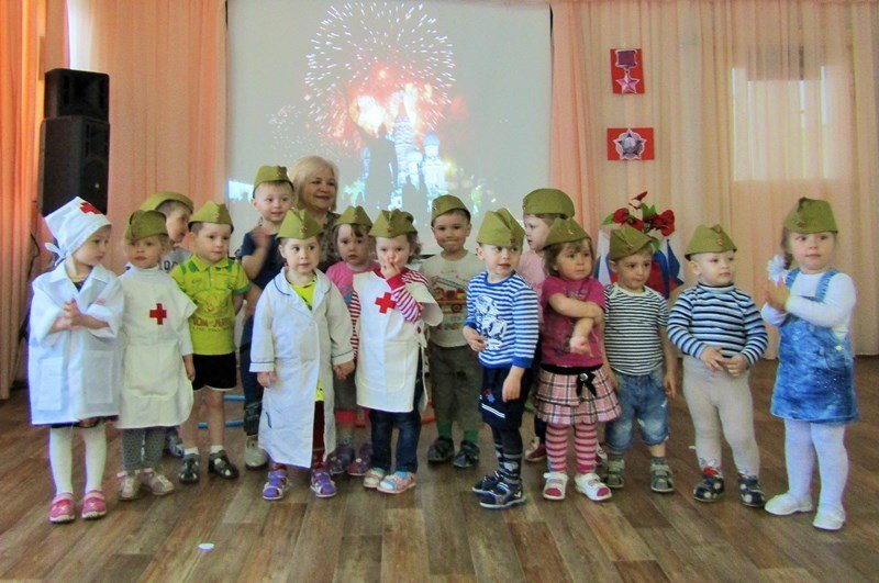 Первая младшая группа "Теремок" встречает День Победы (воспитатель Наталья Аркадьевна Усова, музыкальный руководитель Ольга Львовна Морозова).