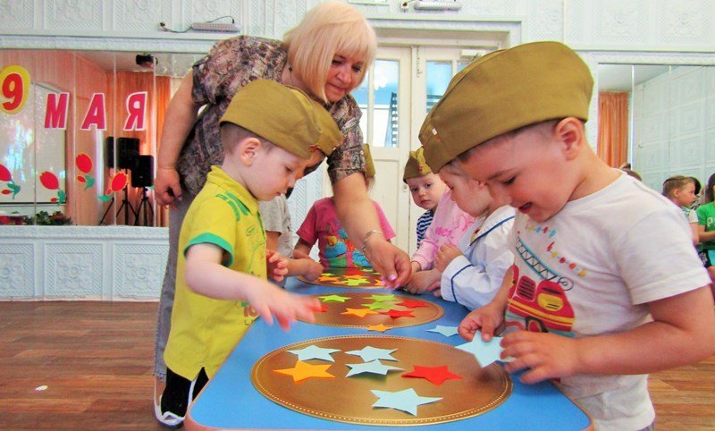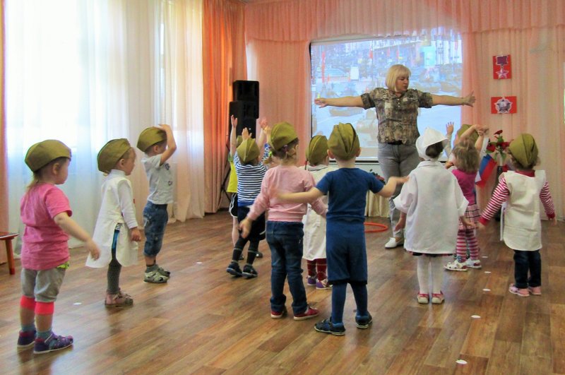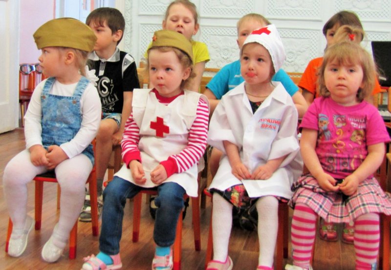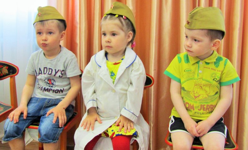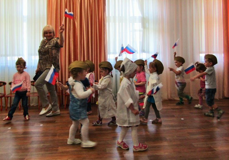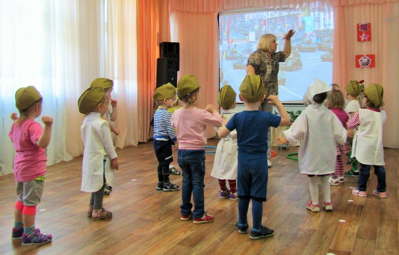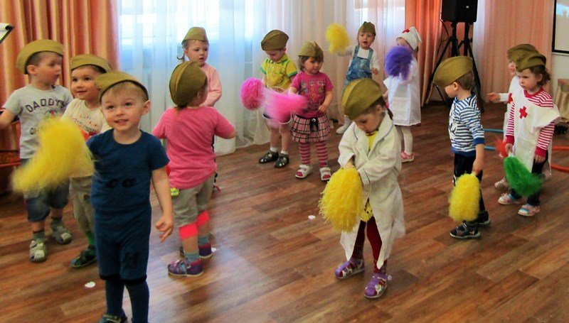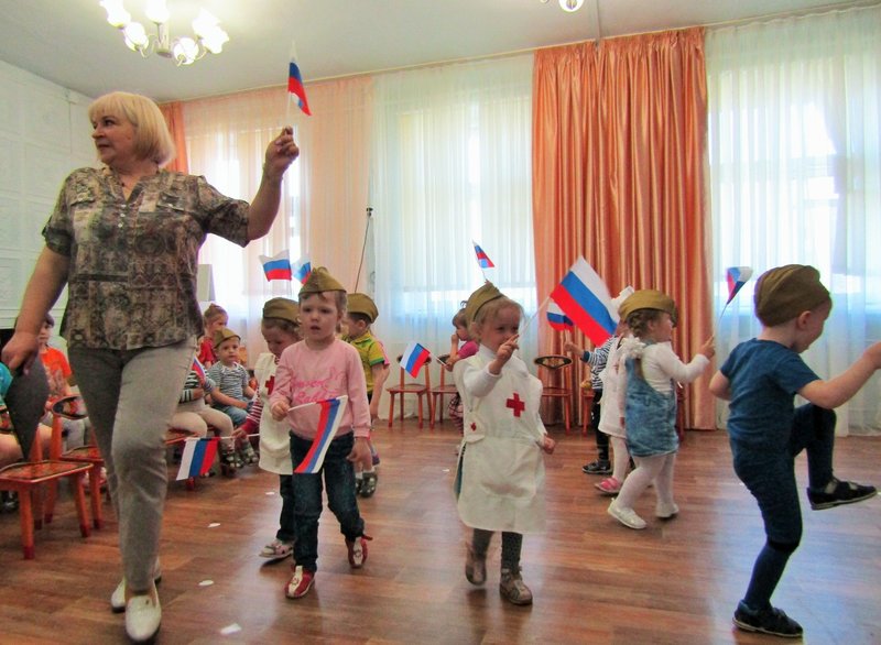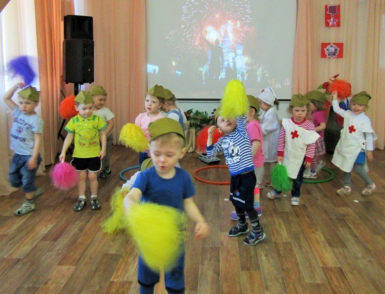 Первая младшая группа "Теремок" встречает День Победы (воспитатель Наталья Аркадьевна Усова, музыкальный руководитель Ольга Львовна Морозова).