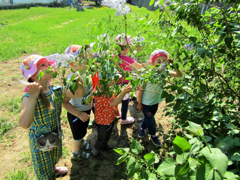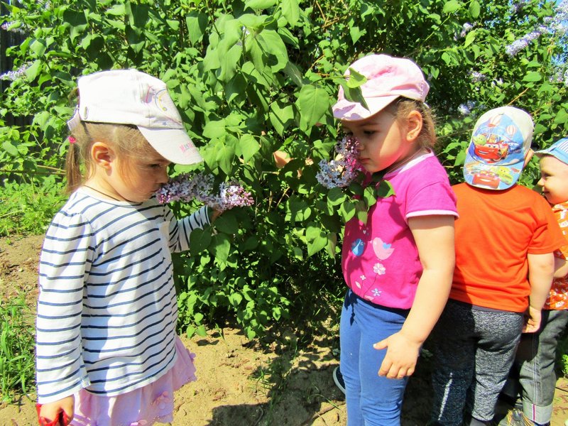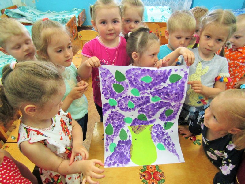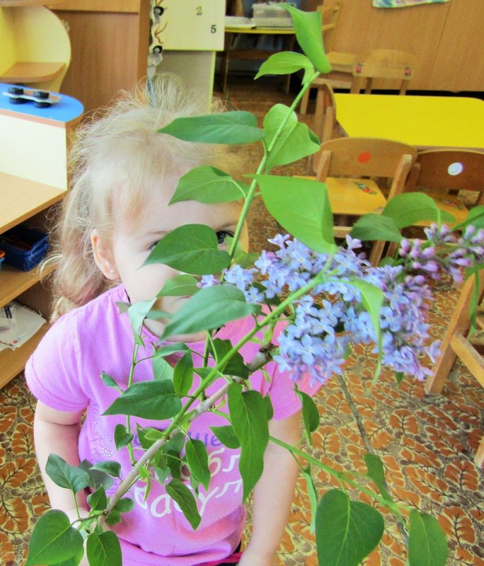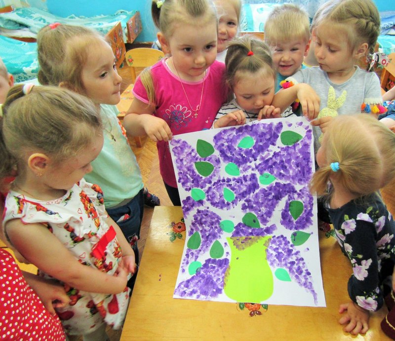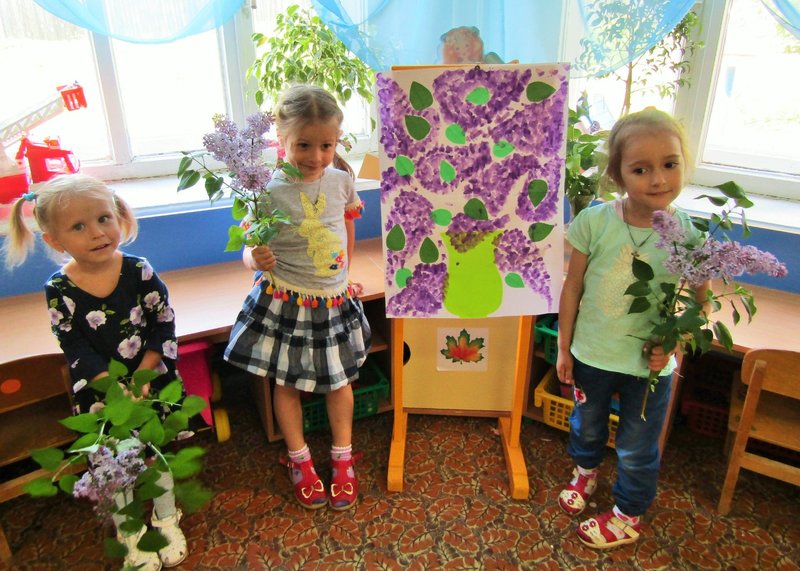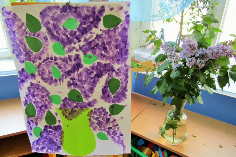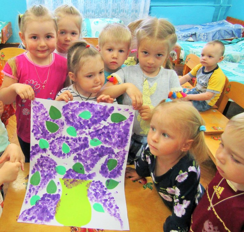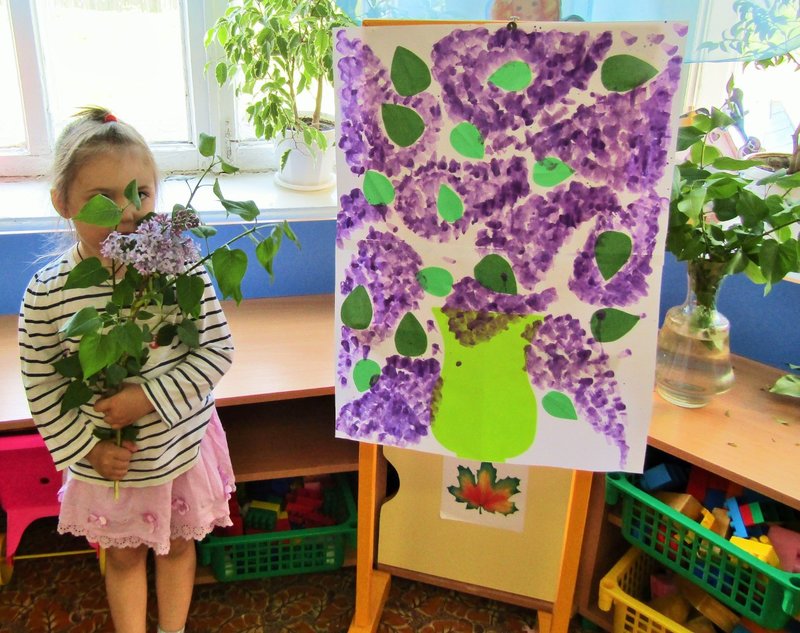 Ребята младшей группы «Мишутка» (воспитатель Елена Юрьевна Кожокина) с интересом рассмотрели куст сирени и окунулись в душистый аромат. А чтобы оставить себе на память кусочек цветущего мая, создали красивую картину «Букет сирени».