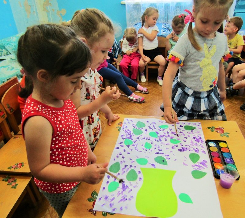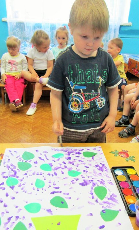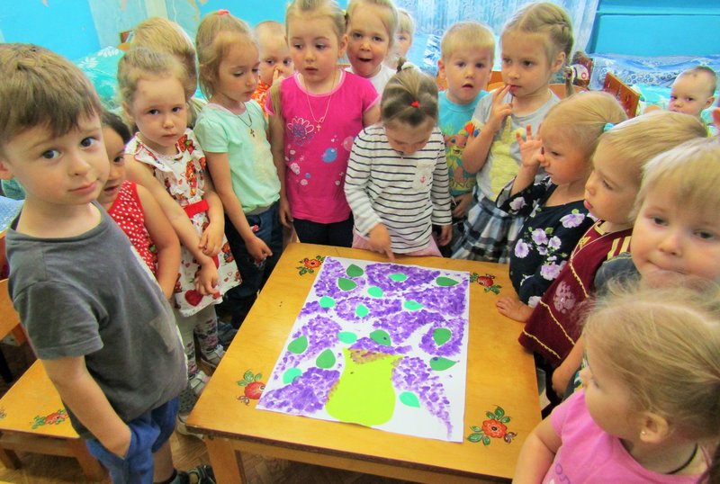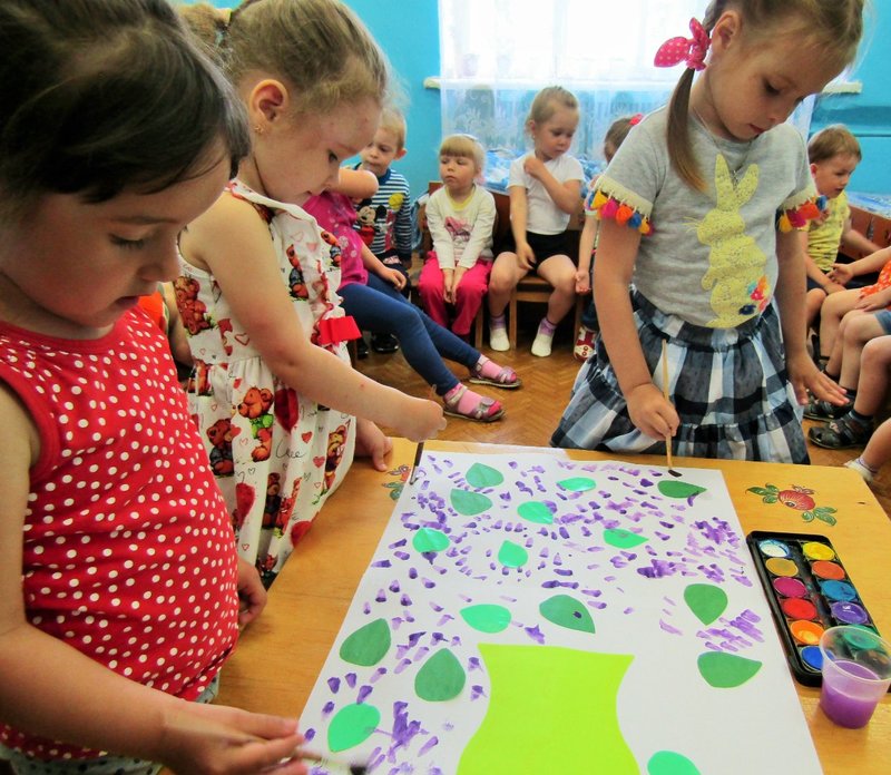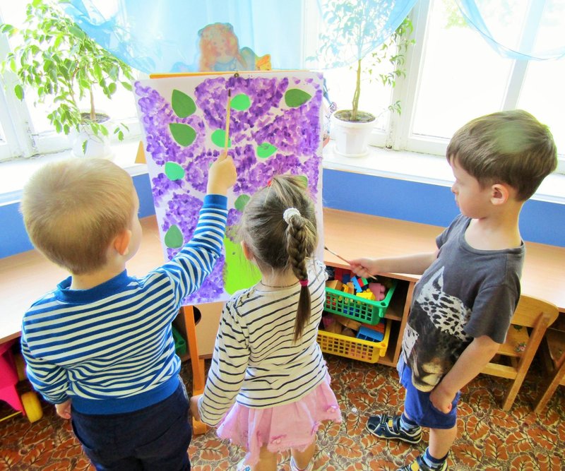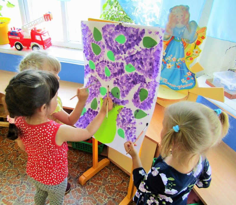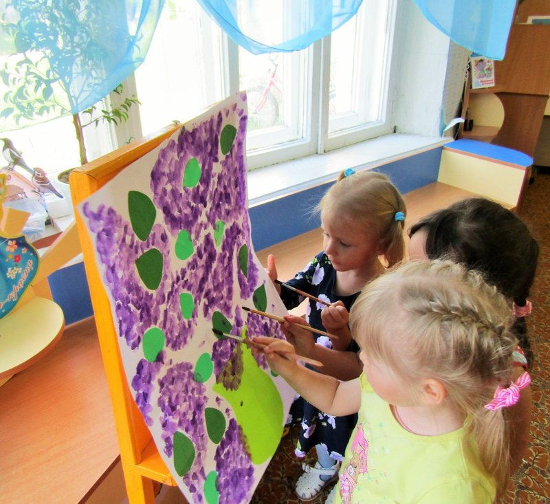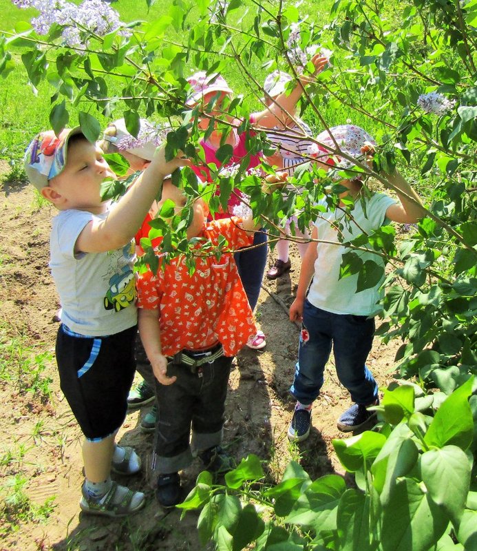 Ребята младшей группы «Мишутка» (воспитатель Елена Юрьевна Кожокина) с интересом рассмотрели куст сирени и окунулись в душистый аромат. А чтобы оставить себе на память кусочек цветущего мая, создали красивую картину «Букет сирени».