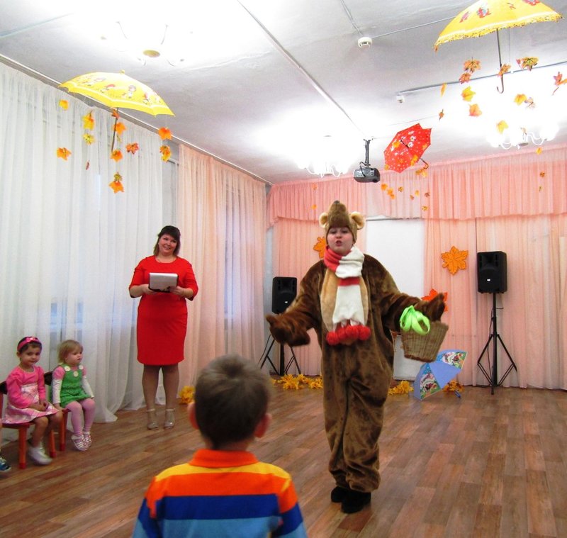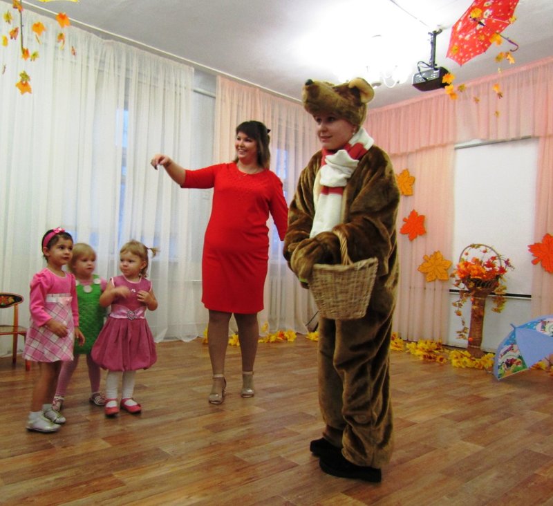 24 октября состоялся осенний праздник в первой младшей группе "Теремок" (воспитатель Чечерина Алёна Александровна). Самые маленькие наши воспитанники вместе со своими родителями встречали Осень. В гости к малышам, услышав веселье, заглянул и Мишка косолапый (младший воспитатель средней группы Селиванова Кристина Александровна). Ребятишки исполнили его любимые песню и танец, а довольный Мишка угостил их сладостями.