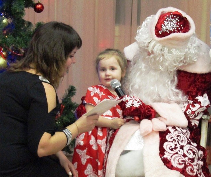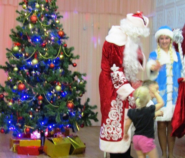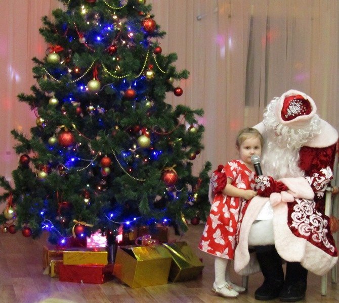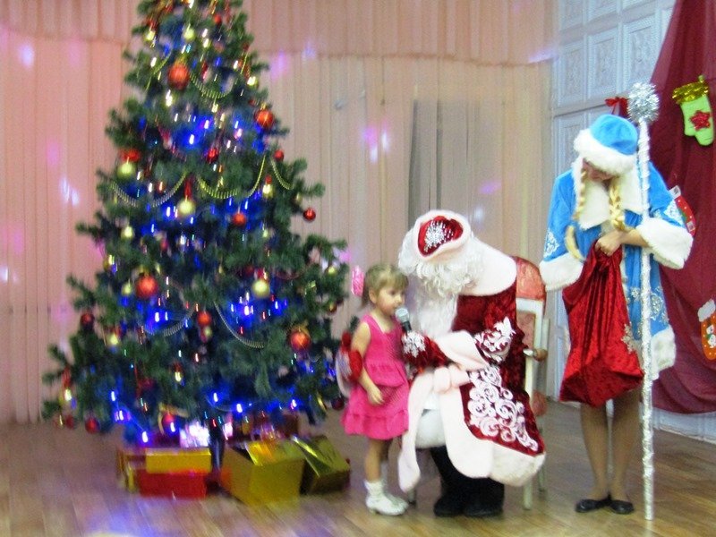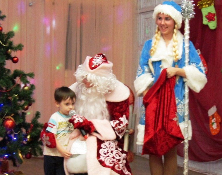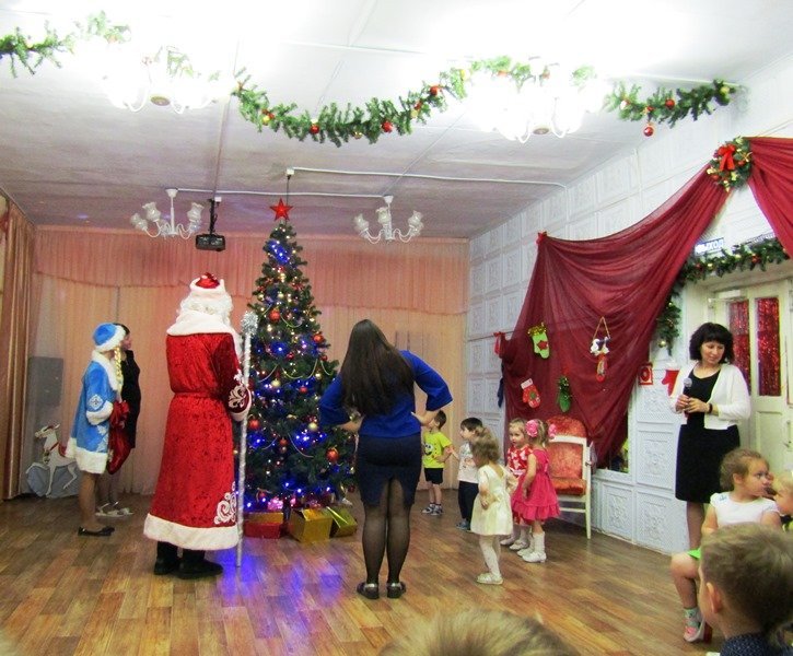 На рождественский вечер к ребятам пришли Дедушка Мороз и Снегурочка. С дорогими гостями ребята спели песенку и прошлись в прощальном хороводе.