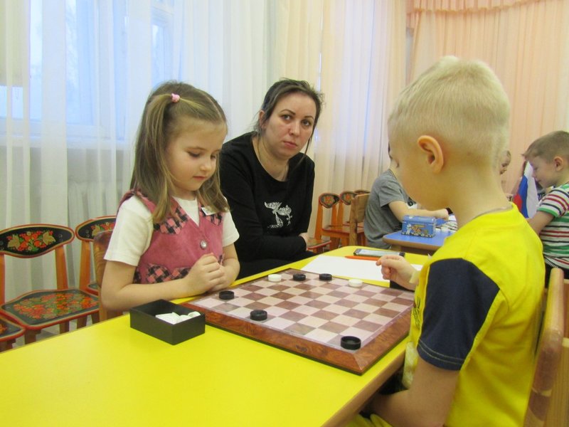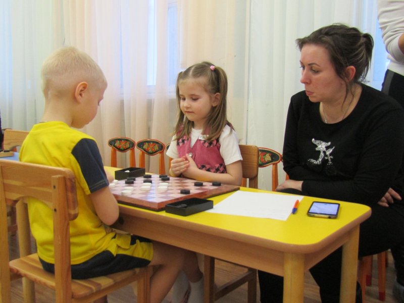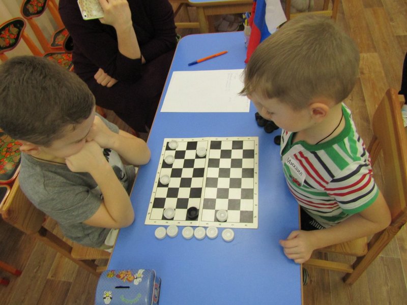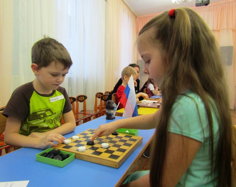 11 февраля в нашем детском саду впервые проходил турнир по шашкам среди воспитанников старшей группы. В пятерку лучших игроков вошли Маслов Сергей, Кочнев Никина, Голованов Дмитрий, Февралёв Михаил, Климакова Татьяна. Эти ребята будут представлять наш детский сад на первом районном турнире по шашкам, который будет проходить в начале марта в Доме Москвы.