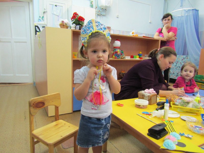 Дорогие друзья! Предлагаем Вам фоторепортаж с творческого мастер - класса воспитанников первой младшей группы "Теремок". Вместе с воспитателем Алёной Николаевной Кропотовой и мамами наши малыши усердно готовились к Масленице. Предлагаем Вам полюбоваться, какие кокошники для девочек и балалайки для мальчиков были сделаны общими усилиями.