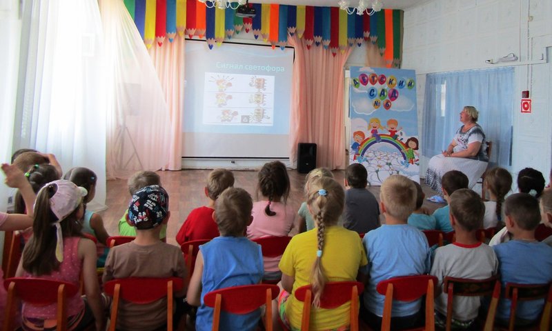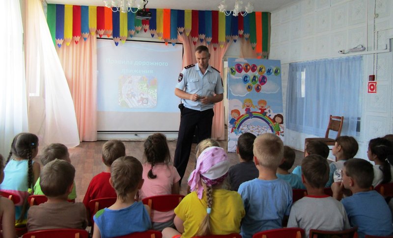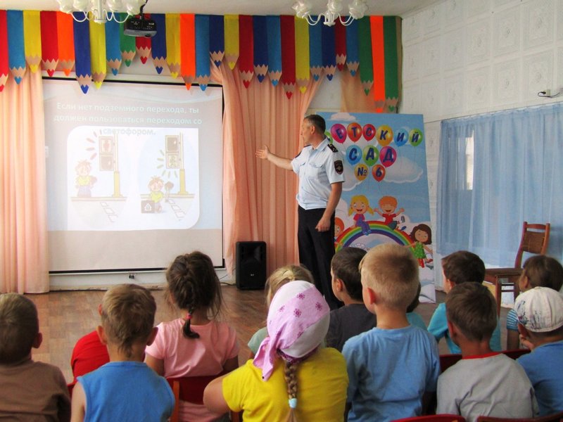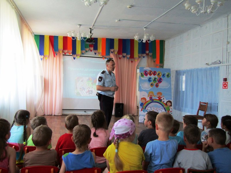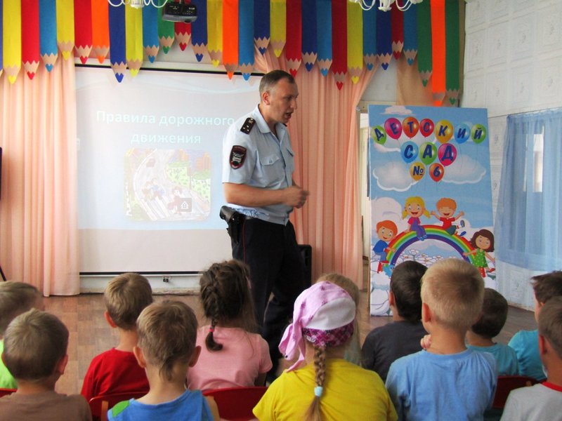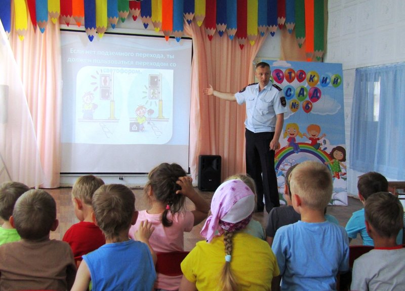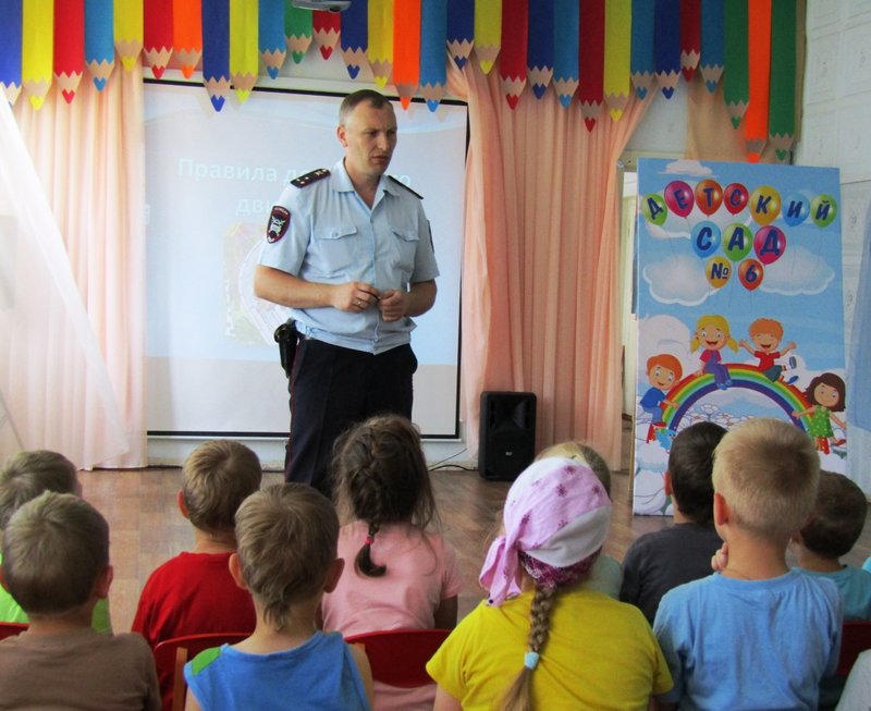 10 июня в нашем детском саду состоялась встреча инспектора ГИБДД с воспитанниками средней и старшей групп (воспитатели И.В.Смирнова, Е.Ю.Ерёмина). Федяев Михаил Валентинович во время беседы с ребятами и демонстрации электронной презентации рассказал им о том, как важно быть внимательным на дороге и знать самые элементарные правила дорожного движения. От соблюдения правил ПДД зависит жизнь людей! Вот почему с раннего возраста нужно объяснять детям в доступной форме, как вести себя на проезжей части дороги, как пользоваться пешеходным переходом и светофором, можно ли играть вблизи дороги и как её переходить, если поблизости нет светофора. Наши выпускники совсем скоро пойдут в школу, и эти знания будут жизненно важны для них.