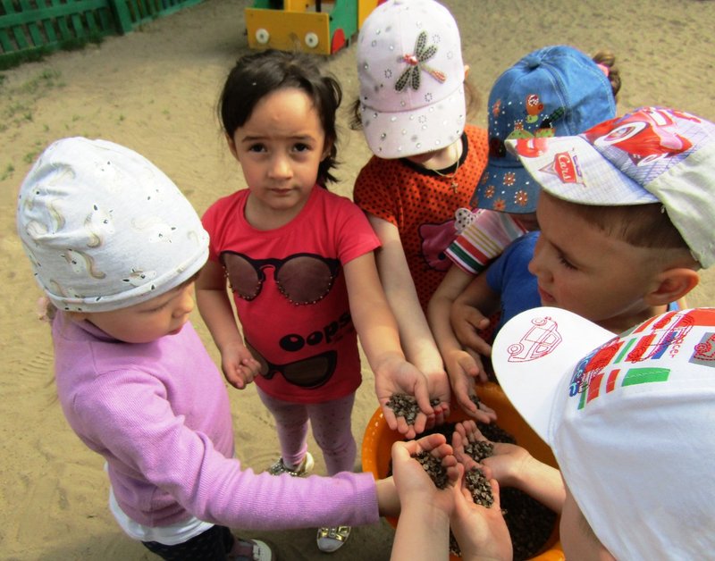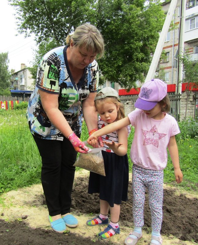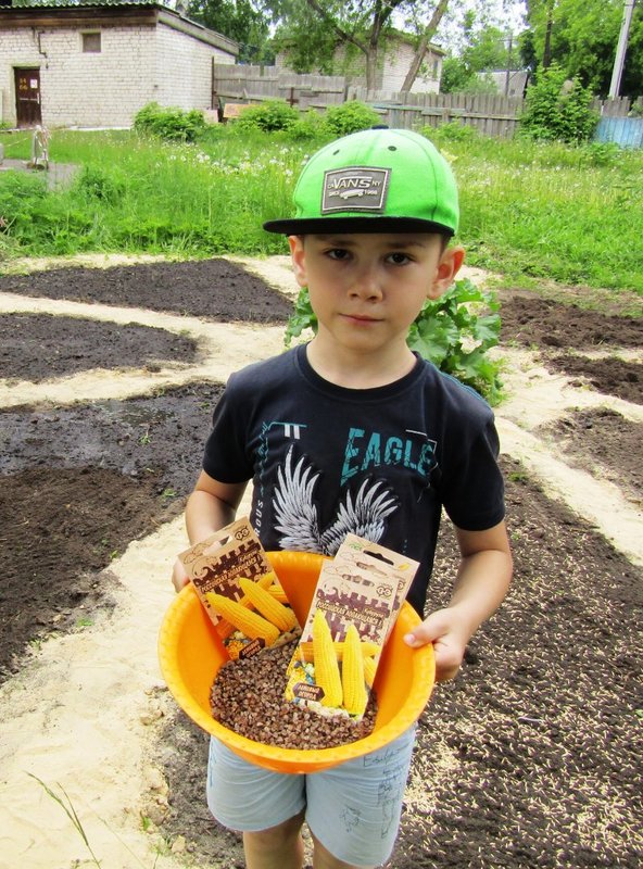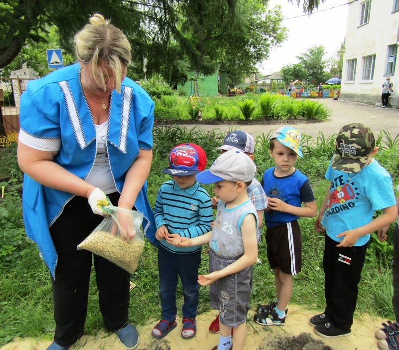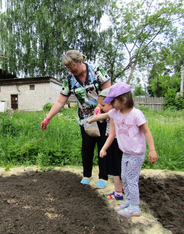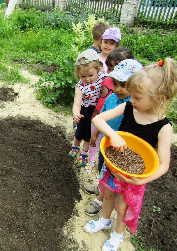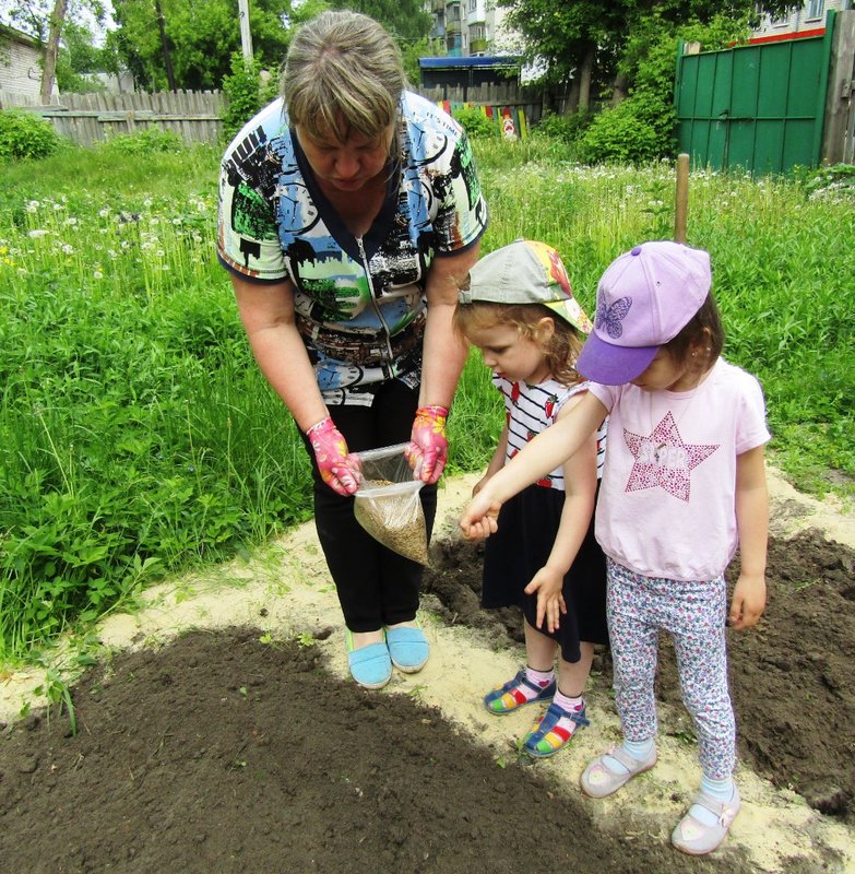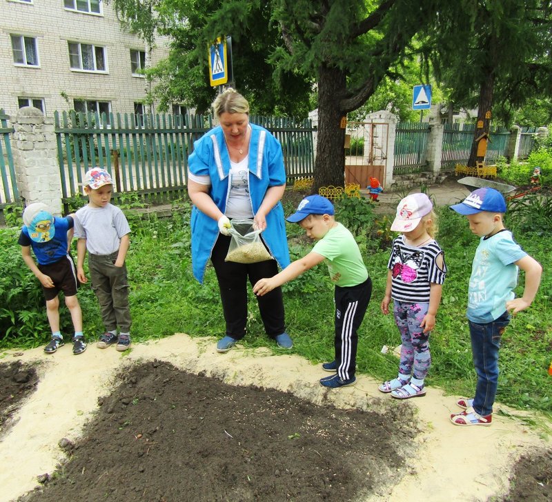 Вместе с сотрудниками детского сада, родителями, педагогами ребята трудились на хлебной грядке. Общими усилиями вскопали, подготовили землю и посеяли овёс, гречиху, кукурузу и рожь. Дело осталось за малым: всё лето усердно поливать, полоть, оберегать грядку от птиц, наблюдать за ростками и узнавать неизвестное до сих пор о хлебных злаках. А в конце лета собрать урожай, обмолотить зерно и испечь хлеб нового урожая. Вот тогда и праздник устроим общий, весёлый!