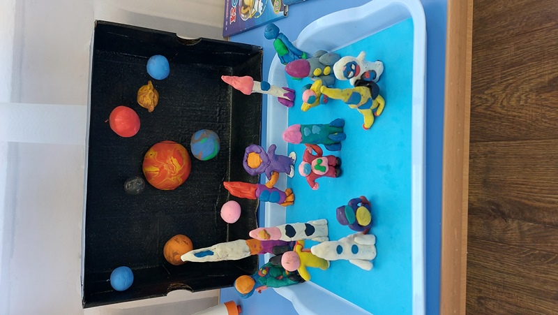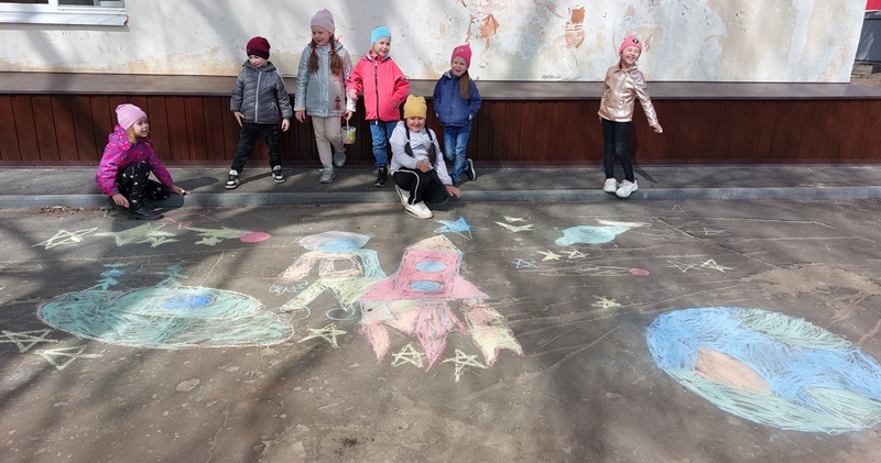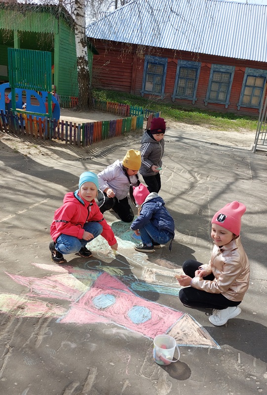 Сколько познавательного, интересного и удивительного узнали воспитанники подготовительной группы "Солнышко" (педагоги Е.Ю.Еремина, О.Н.Муравьева) о космосе и его первооткрывателях! Сколько разных занятий было организовано с ребятами: познавательные беседы, лепка "Космическое путешествие", тематические игры, рисование на асфальте и другое.