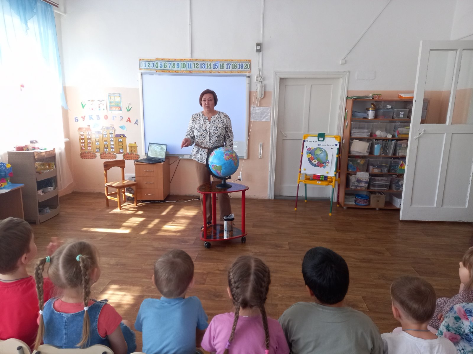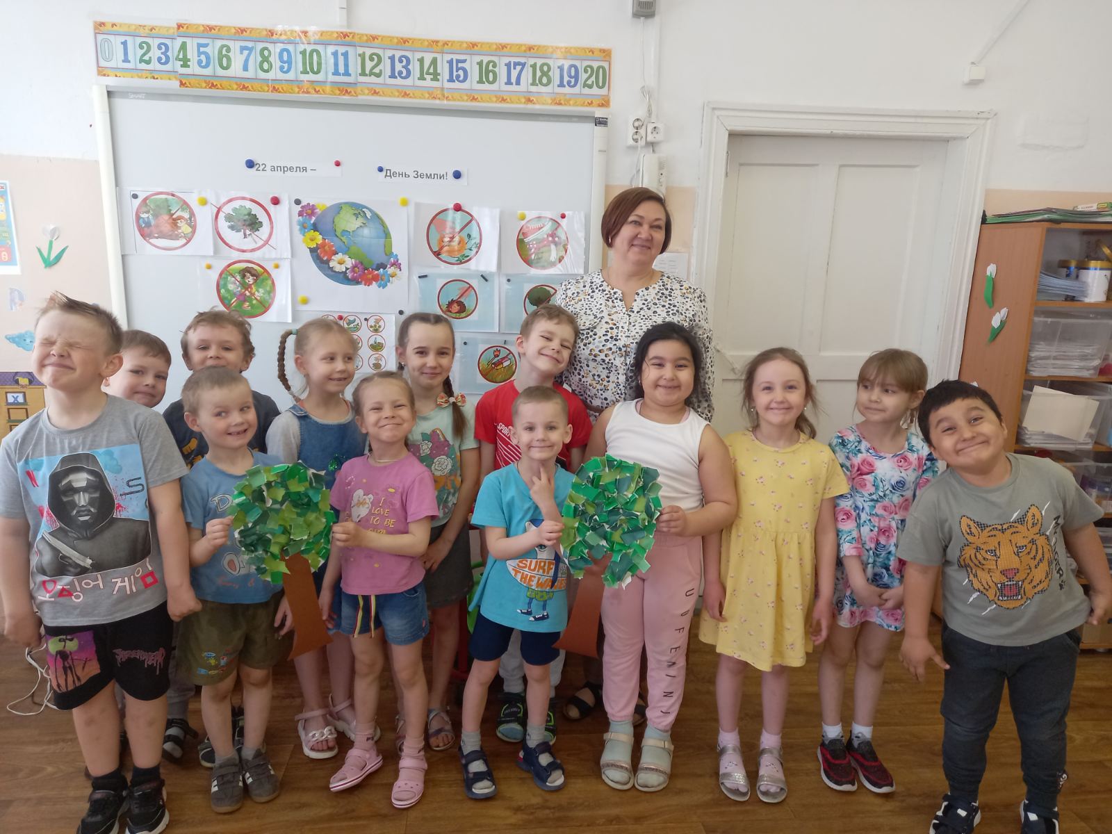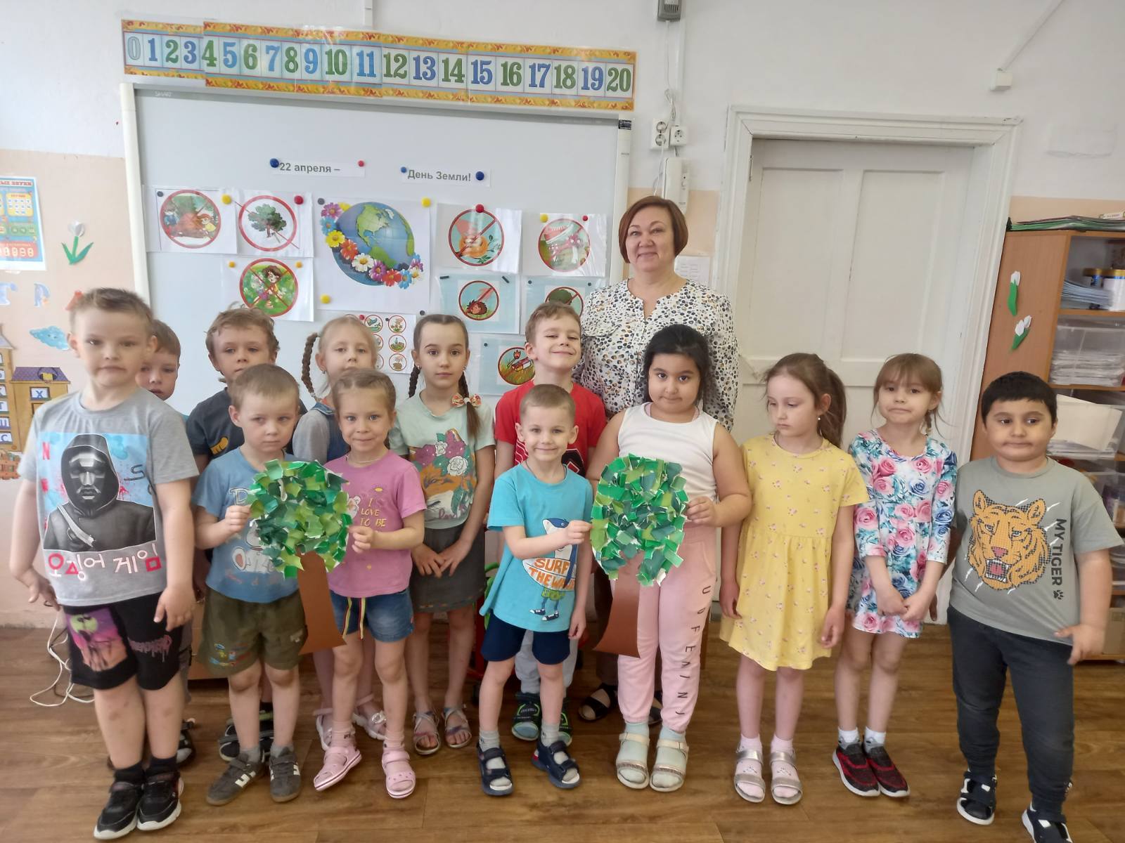 Началось тематическое занятие в подготовительной группе (воспитатель Е.Ю.Еремина) с просмотра презентации "Земля — это наш дом, и мы должны его беречь". Рассмотрели ребята под руководством педагога макет Земли - глобус, экологические знаки. Вспомнили все вместе правила поведения на природе. Провели опыт с водой "Какую воду будешь пить?". А завершением занятия стал подарок Земле - деревья.
