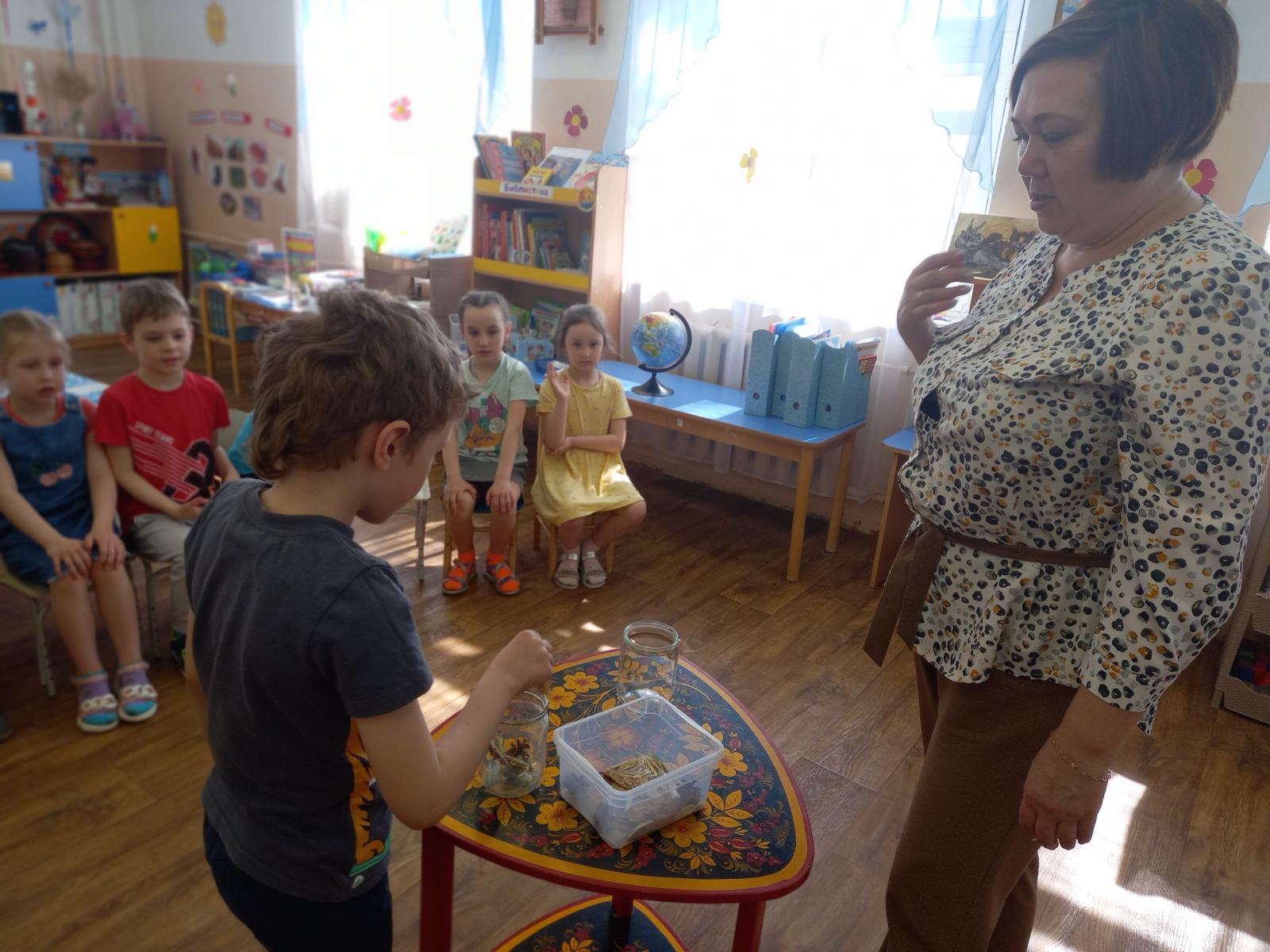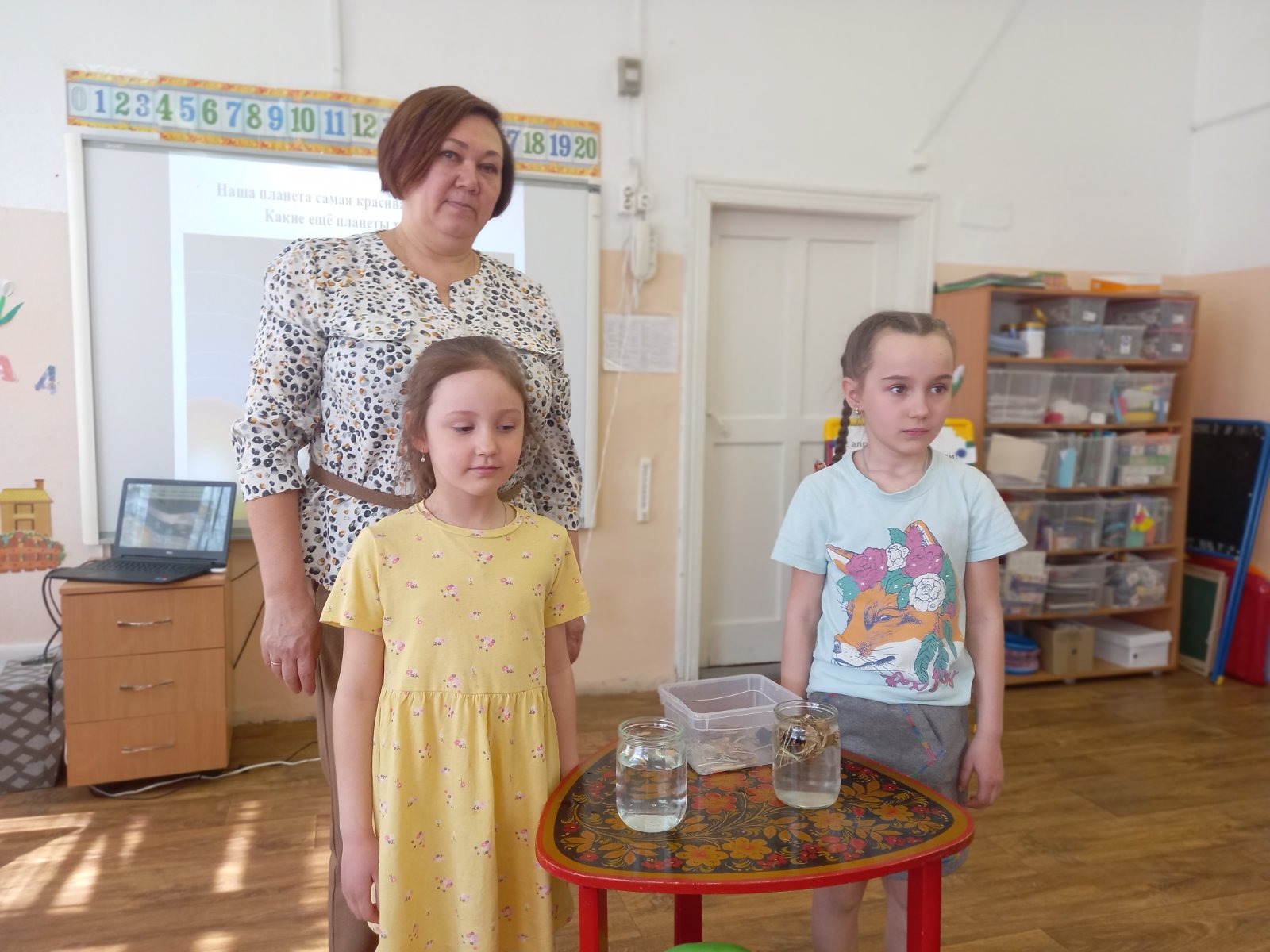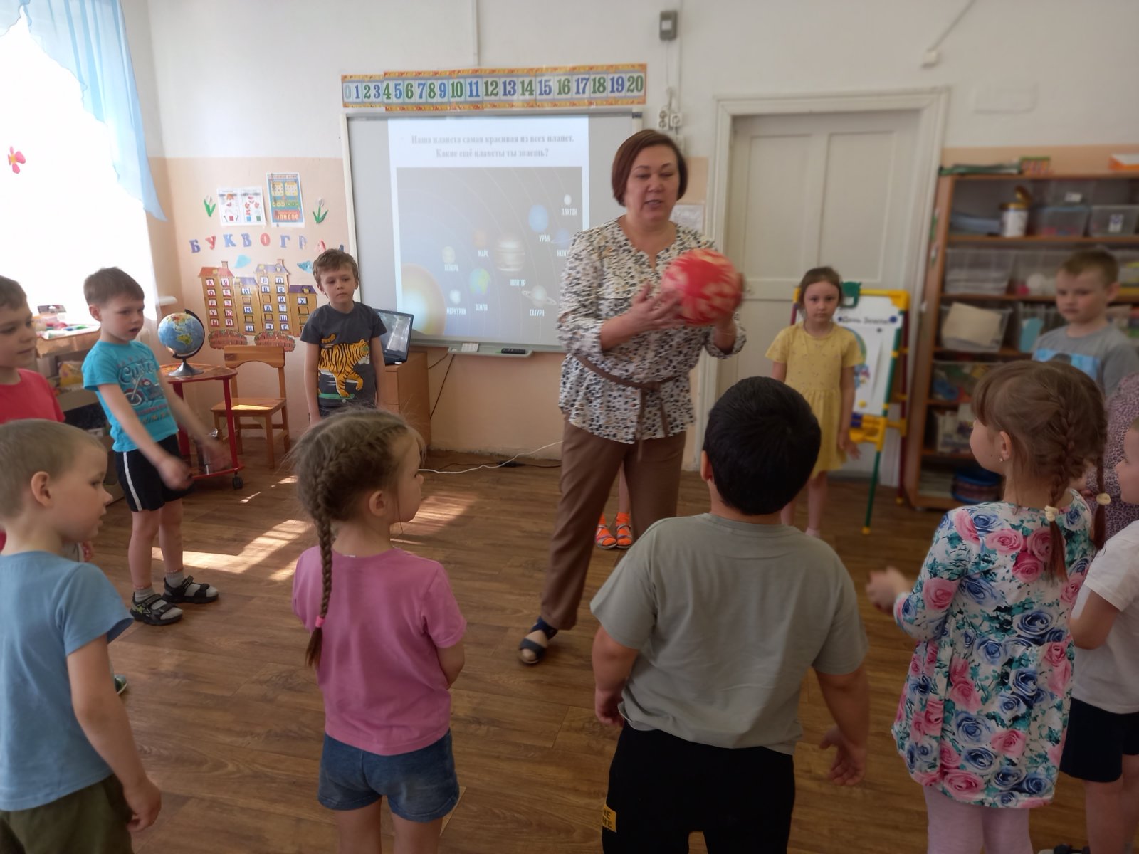 Началось тематическое занятие в подготовительной группе (воспитатель Е.Ю.Еремина) с просмотра презентации "Земля — это наш дом, и мы должны его беречь". Рассмотрели ребята под руководством педагога макет Земли - глобус, экологические знаки. Вспомнили все вместе правила поведения на природе. Провели опыт с водой "Какую воду будешь пить?". А завершением занятия стал подарок Земле - деревья.
