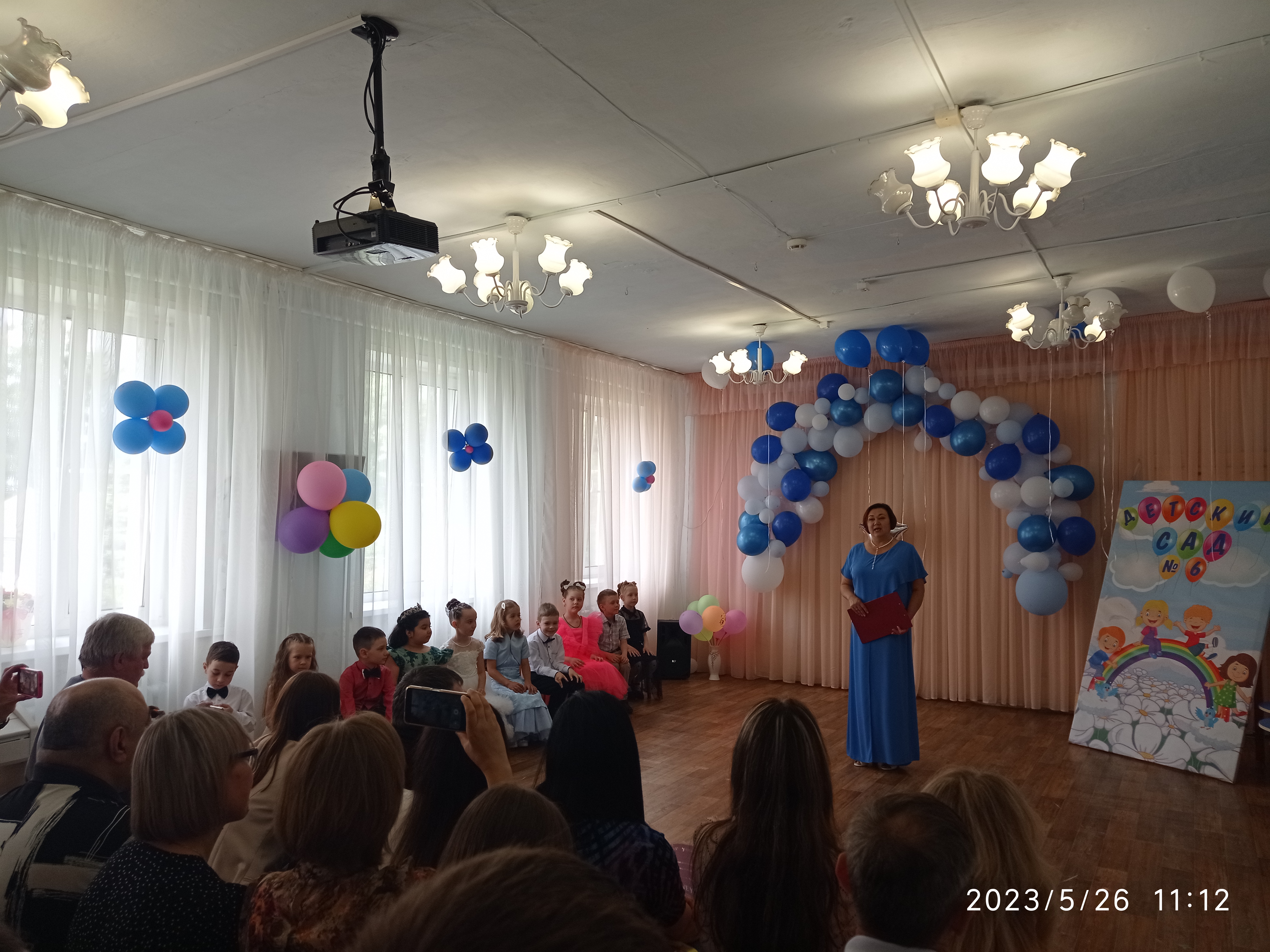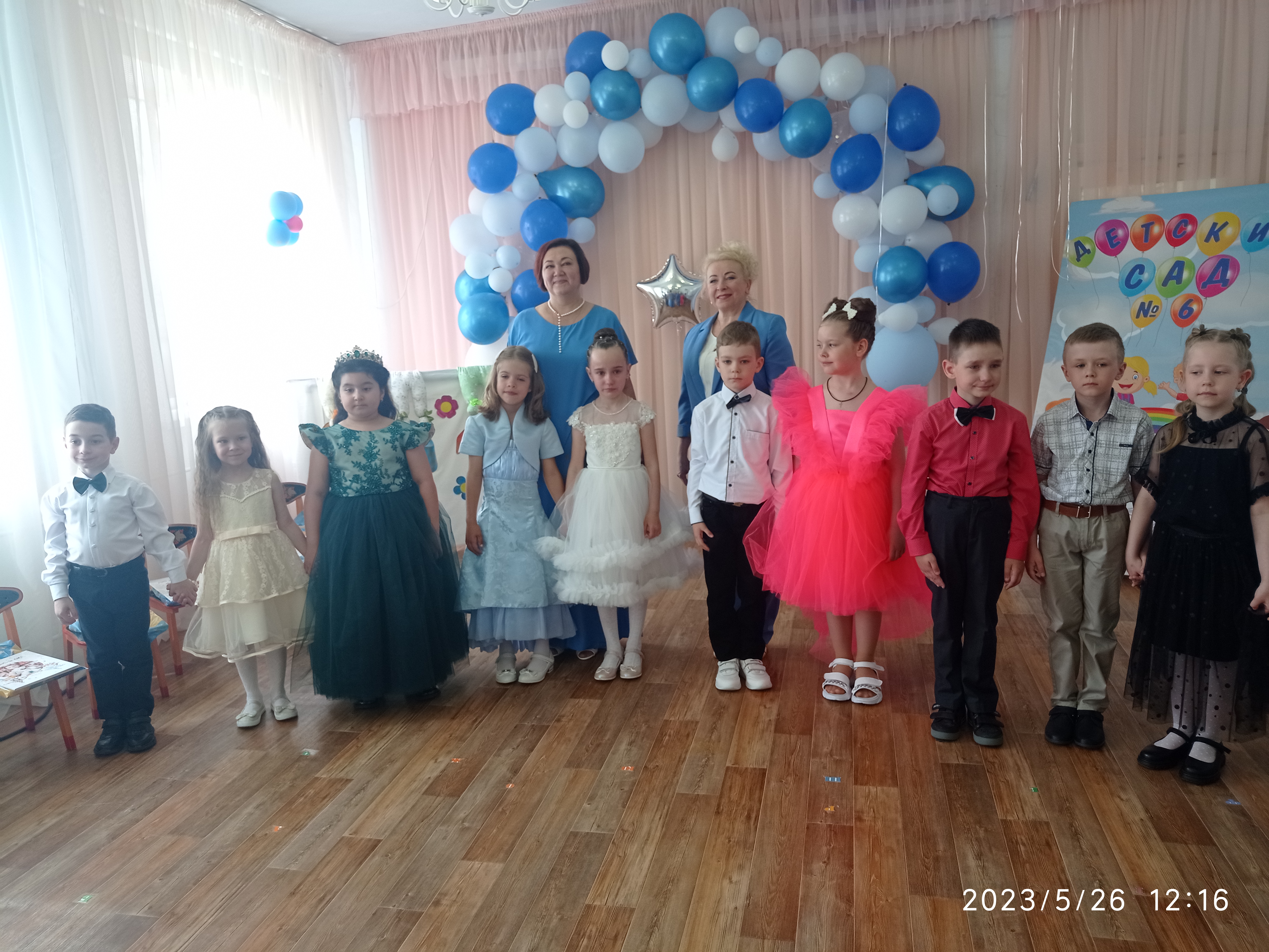 26 мая состоялся главный праздник — выпускной утренник воспитанников подготовительной к школе группы "Солнышко" (воспитатели Е.Ю.Еремина, О.Н.Муравьева).