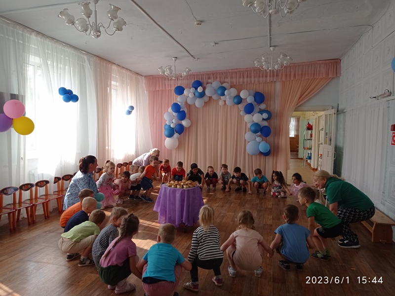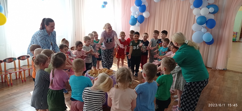В течение дня с ребятами воспитатели проводили тематические мероприятия, игры, танцевали и пели. После сна ребята поздравили Лето красное с днем рождения, исполнив для него песенку — танец "Каравай". А потом все пили чай с именинным пирогом. День прошел весело. Дети довольны и счастливы! Солнечного и мирного всем нам лета!