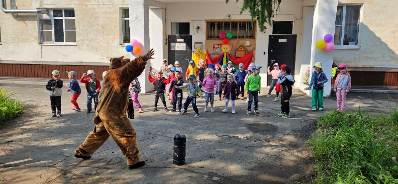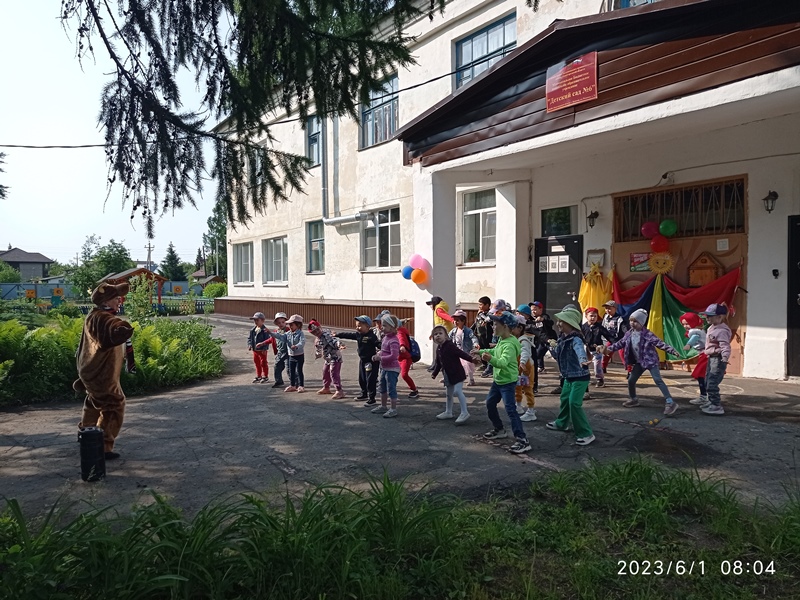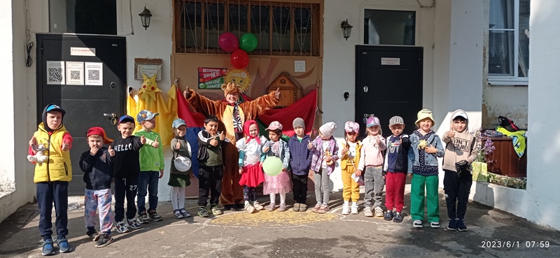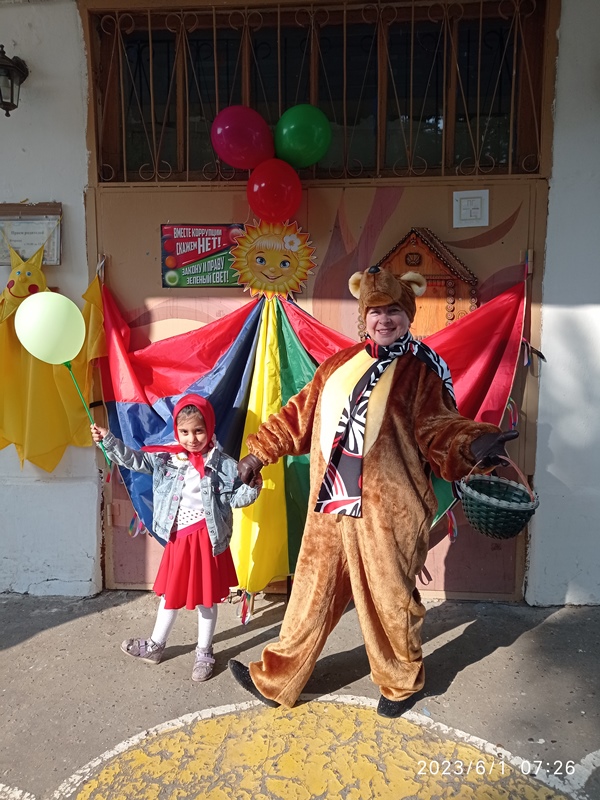 Празднично и весело наш детский сад отметил Международный день защиты детей, первый день лета. С раннего утра детвору и родителей воспитанников встречали Маша и Медведь, одаривая всех улыбками и маленькими сюрпризами. Вместе они сделали утреннюю зарядку, которая только добавила бодрости и праздничного настроения. А затем, пожелав ребятам хорошего дня, Маша и Медведь отправились по своим делам, а наши дети — на завтрак.