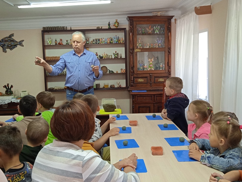 8 июня 2023г. ребята старшей и подготовительной групп (воспитатели Е.Ю.Ерёмина, О.Н.Муравьёва) совершили экскурсию в Балахнинский музей глины. Они побывали в мастерской жбанниковской свистульки, приняли участие в демонстрационном мастер — классе потомственного мастера, научного сотрудника музея Е.Ф.Тимофеева, увидели красивые и удивительно "голосистые" свистульки Евгения Фомича и сами попробовали сделать игрушки из глины.