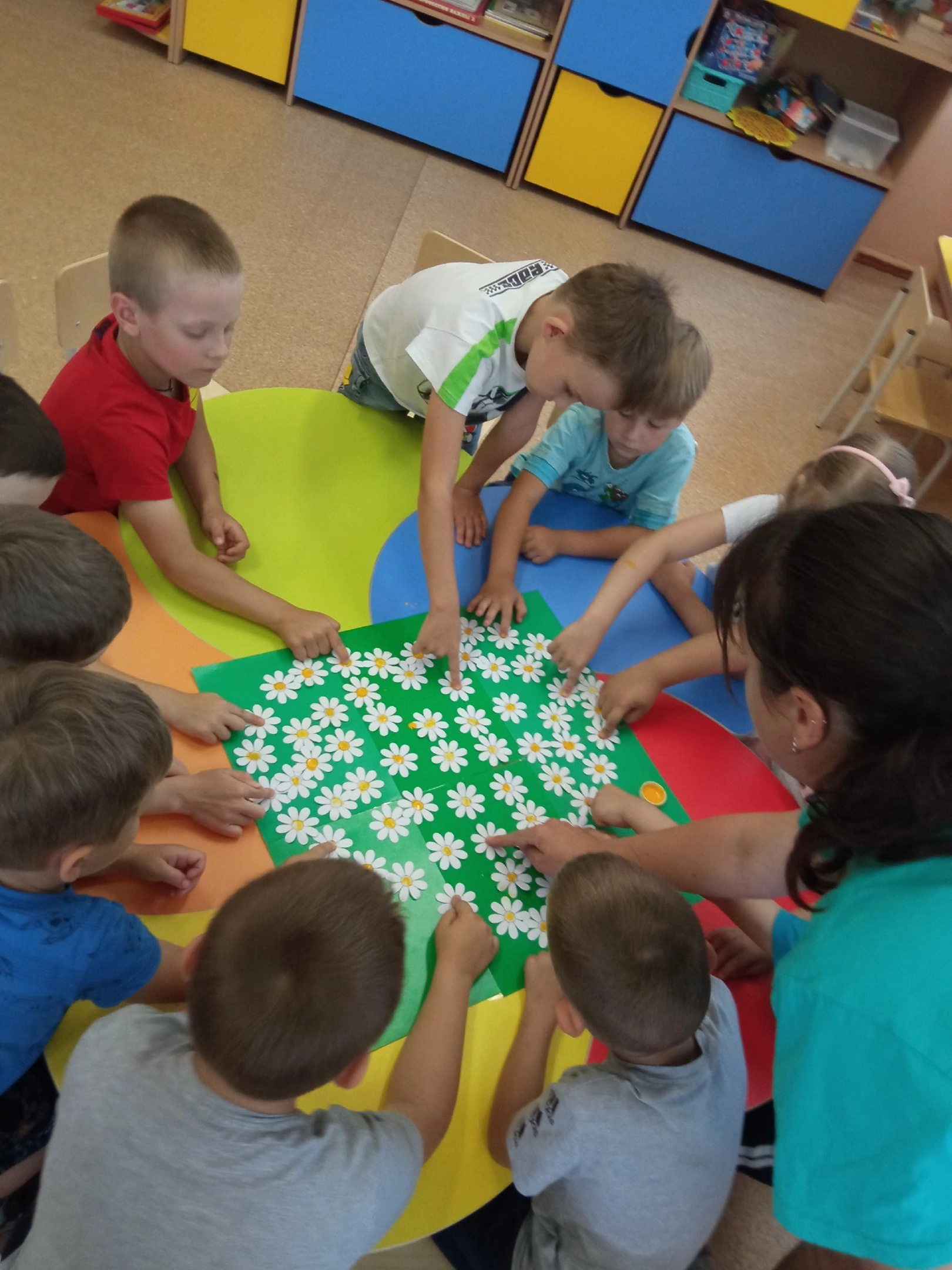 В преддверии праздника во всех группах прошли тематические беседы и мероприятия, посвященные семье. Воспитанники подготовительной, старшей и средней группы вместе с педагогом Черновой К.В. сделали коллективную работу "Ромашковое сердце". Ромашка является символом праздника неслучайно, ведь в день святых благоверных Петра и Февронии, в полях и лугах активно цветут ромашки и издавна этот полевой цветок считался символом любви.