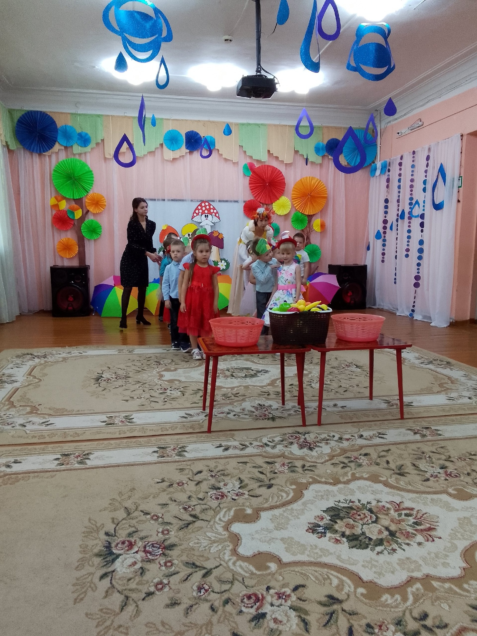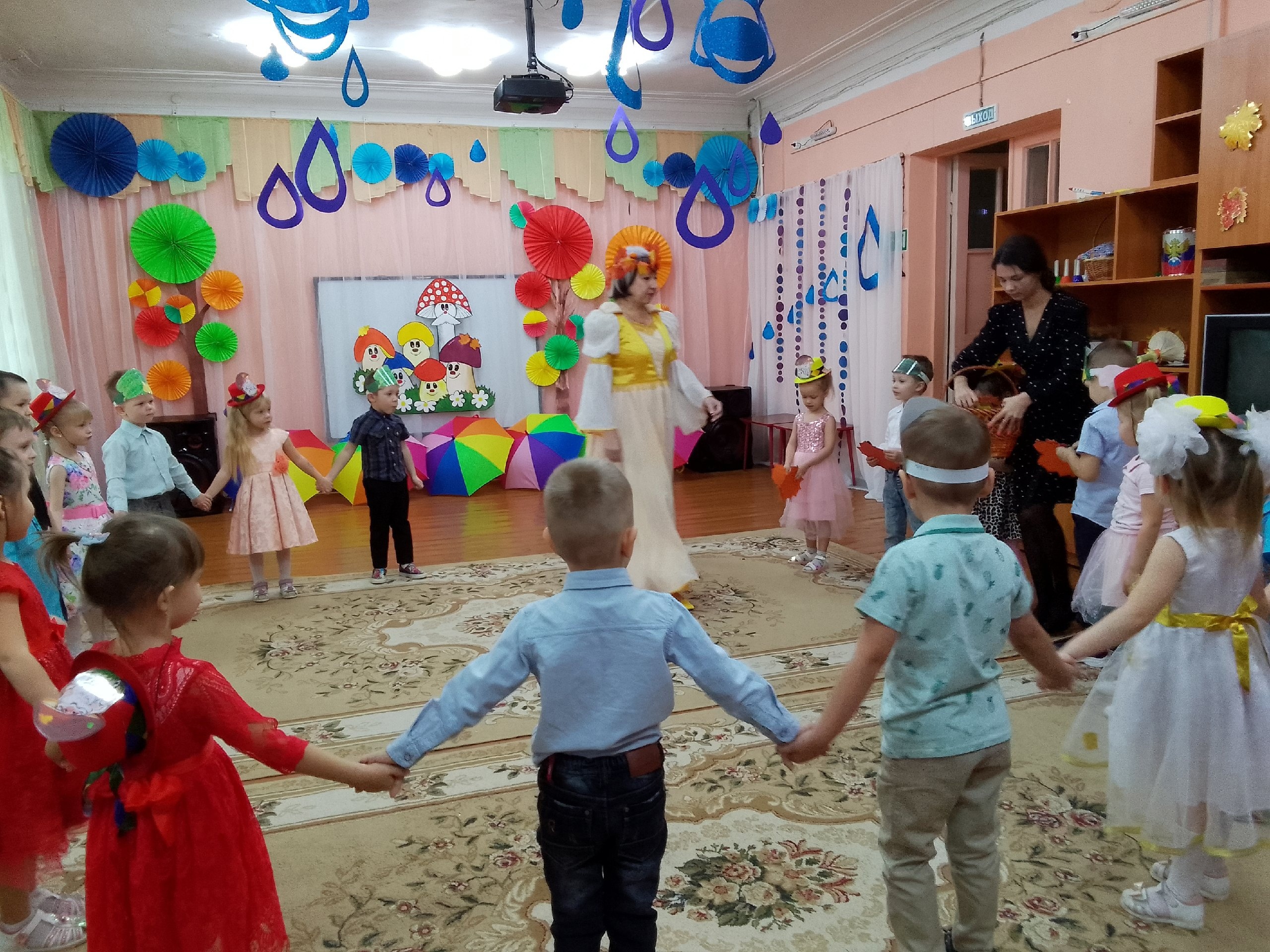 25 октября прошел празник в средне - старшей группе "Почемучки" к ним тоже приходила в гости Волшебница - Осень. Она показала детям, что бывает очень солнечной добродушной, но бывает и хмурой, дождливой. Для Волшебницы - Осени дети читали стихи, танцевали, пели песни и конечно же играли.