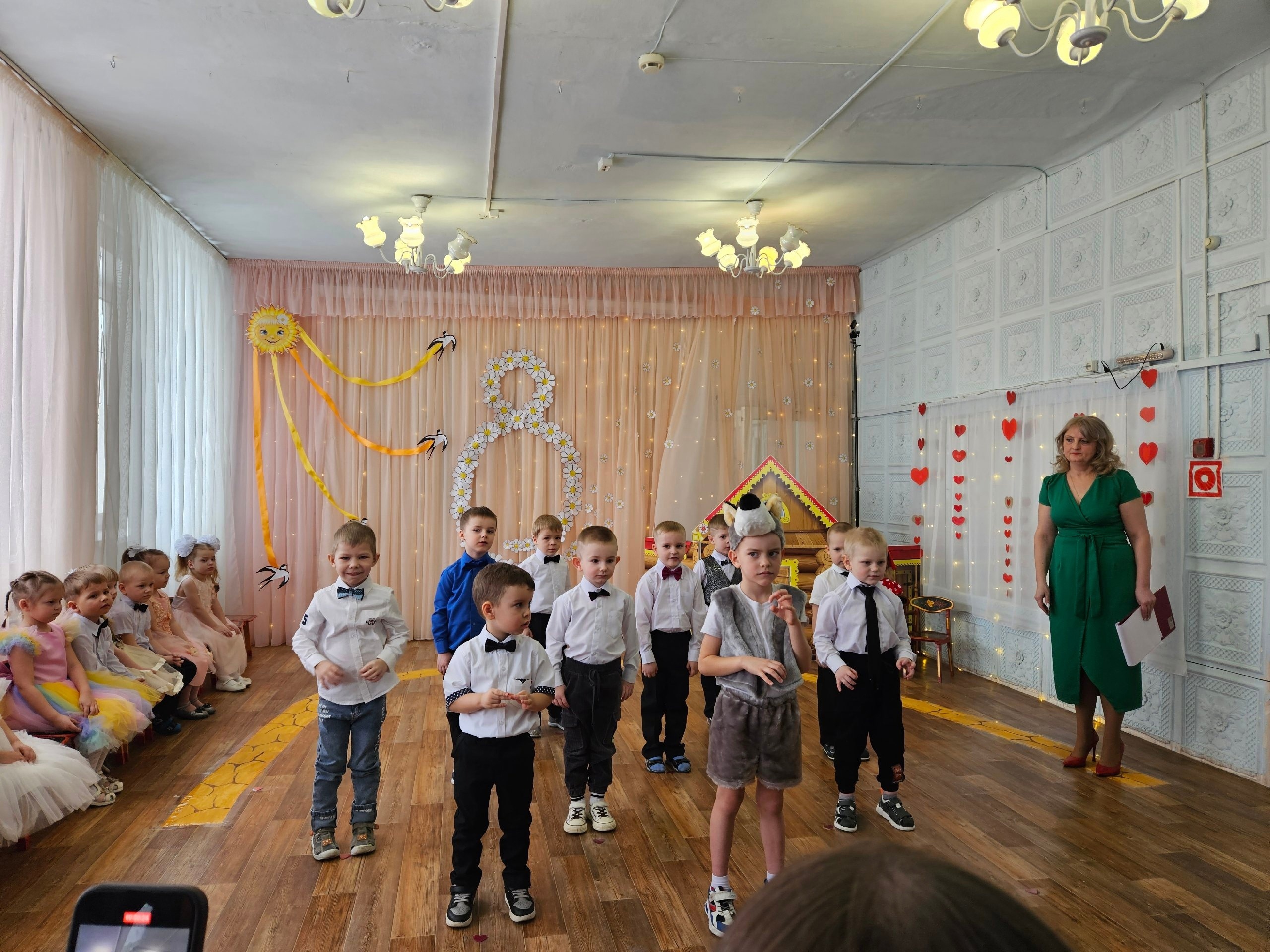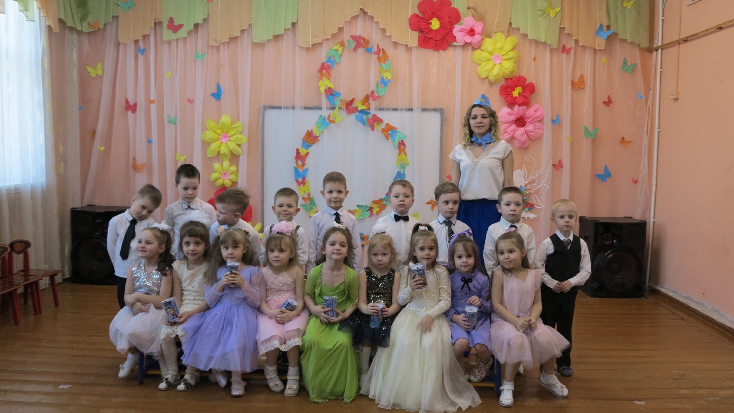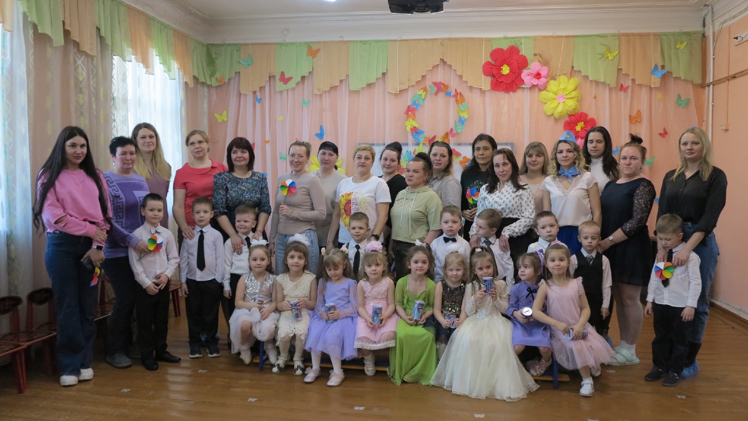 Мероприятие, посвященное Международному Женскому Дню 8 марта, прошёл в нашем детском саду. 8 Марта - Женский день. Праздник, который любят и ждут, чтобы поздравить своих любимых мам, бабушек, сестер. Особых поздравлений удостаиваются наши любимые мамочки, ведь для каждого человека мама – самый близкий и родной челок на земле. Сколько бы ни было нам лет, мама всегда будет считать нас детьми и относиться с трепетом и любовью. Не секрет, что для каждого ребёнка его мама - самая красивая на свете. Нет прекраснее ее глаз, ласковее ее рук, нежнее ее голоса. Трогательными стихами и песнями, завораживающими танцами воспитанники искренне признавались в любви к своим мамам и бабушкам. Сюрпризным моментом были подарки, сделанные руками самих детей. От всей души поздравляем наших девочек, мамочек и бабушек с праздником и желаем крепкого здоровья, праздничного настроения и улыбок!