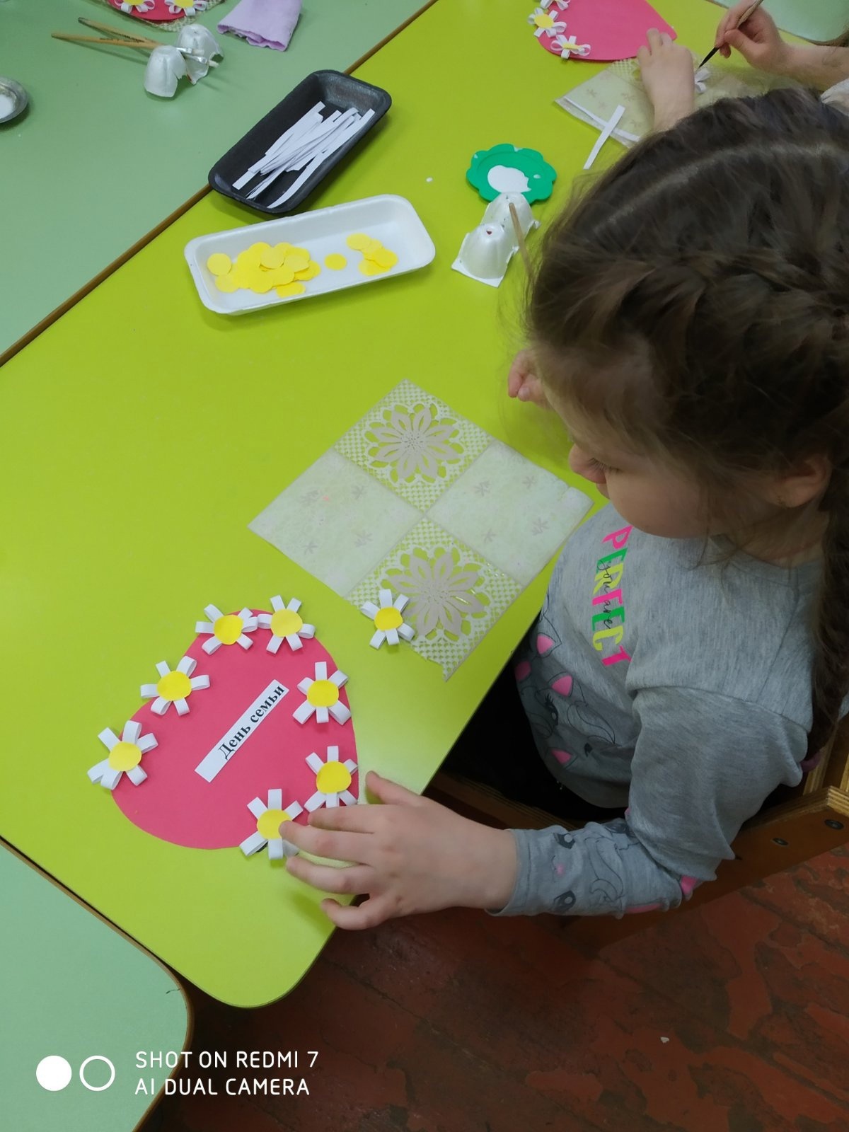Ежегодно 15 мая мы отмечаем замечательный праздник – Международный день семьи. Семья – одна из главных жизненных опор каждого человека. Теплые отношения между близкими людьми, взаимопонимание, поддержка друг друга дают нам силы преодолеть все трудности. Это вечные ценности, которые останутся неизменными на все времена. В рамках празднования Международного дня семьи ребята из средней группы "Мишутка" сделали свои домики и нарисовали в них свою счастливую семью. Воспитанники подготовительной группы "Знайки" приготовили для своей семьи открытки с символичной ромашкой. Простой, но такой распространенный на территории России цветок, обладающий притязательной красотой, стал олицетворять семью.