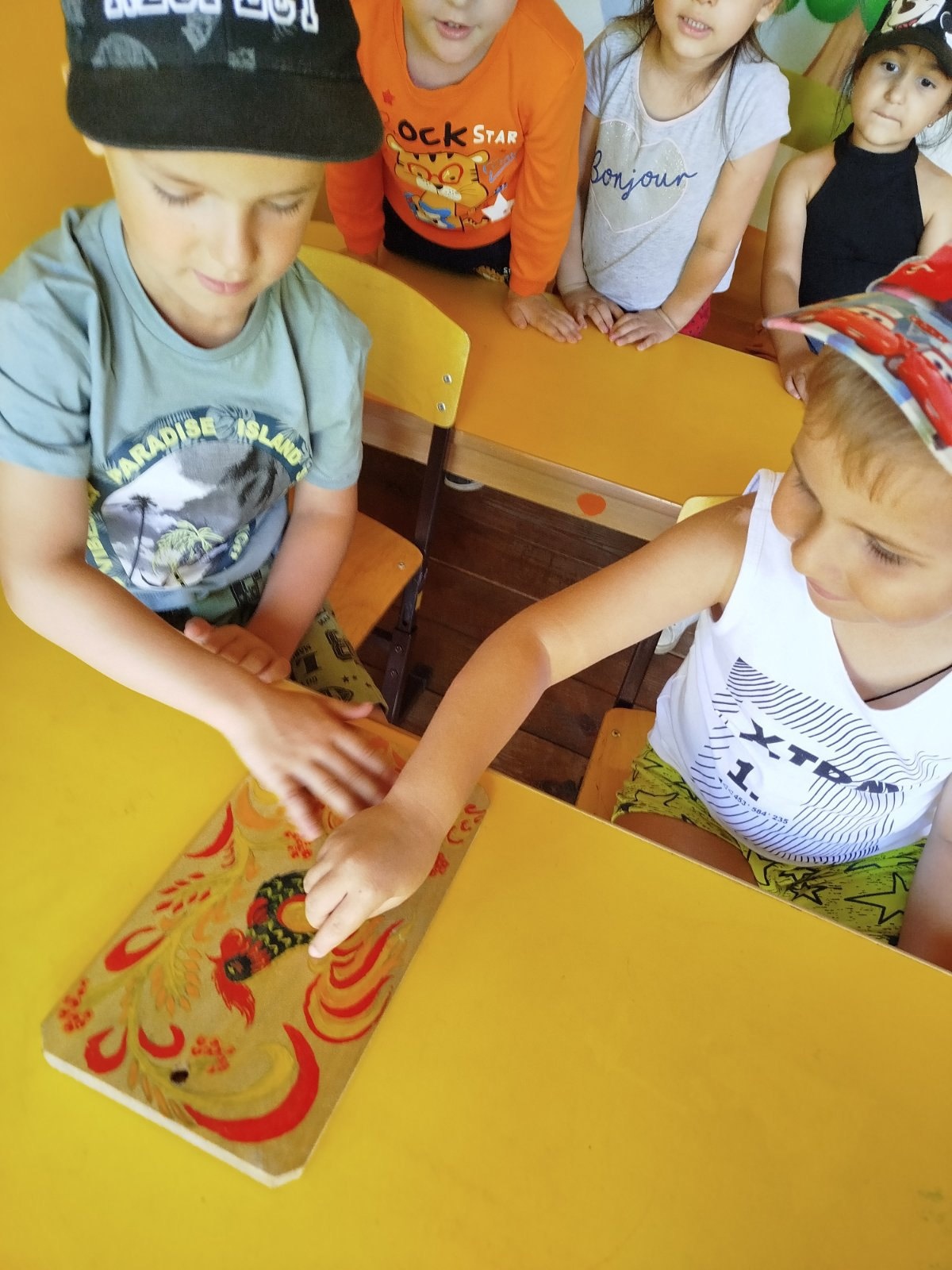 28 июня был день Городецкой росписи. Городецкая роспись — это один из традиционных декоративных промыслов и стоит в ряду самых высоких достижений народного искусства России. Ознакомление с произведениями народного творчества пробуждают в детях первые яркие образные представления о Родине, о ее культуре, способствуют воспитанию патриотических чувств, приобщают к миру прекрасного. Ребята вспомнили какие бывают узоры и цвета.